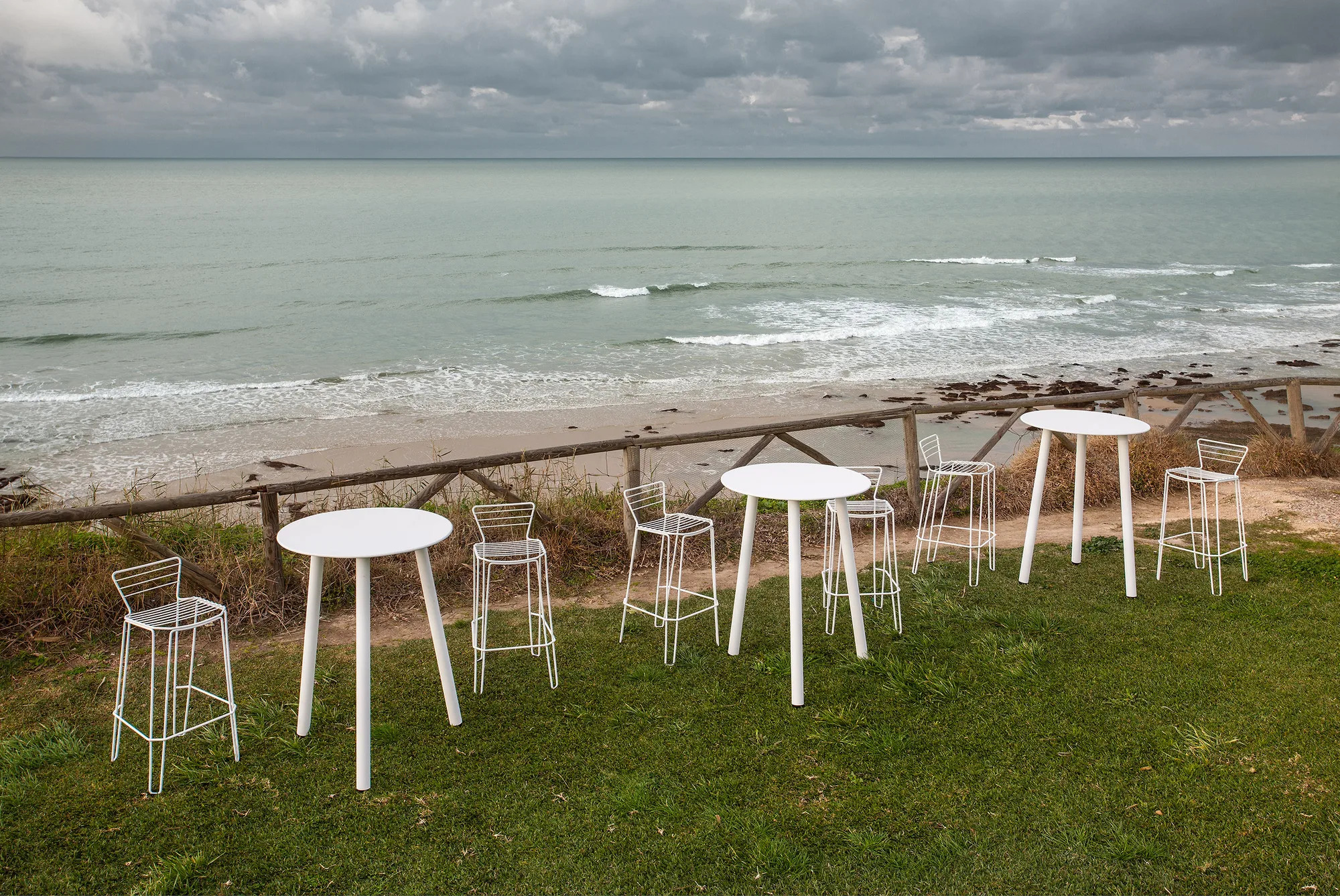 The CORSICA collection features tables crafted from galvanized steel with a polyester powder coating, ensuring durability and versatility for various settings. These modern design tables are ideal for both indoor and outdoor environments, making them suitable for restaurants, conference rooms, coworking spaces, cafés, event venues, banquet halls, and educational institutions. The robust construction provides reliable support, while the sleek design complements any décor. Additionally, the collection includes ergonomic and stackable café chairs, offering comfortable and space-efficient seating solutions. This furniture range is designed to meet the demands of high-traffic areas, providing a practical and stylish option for dining tables and conference room furniture.