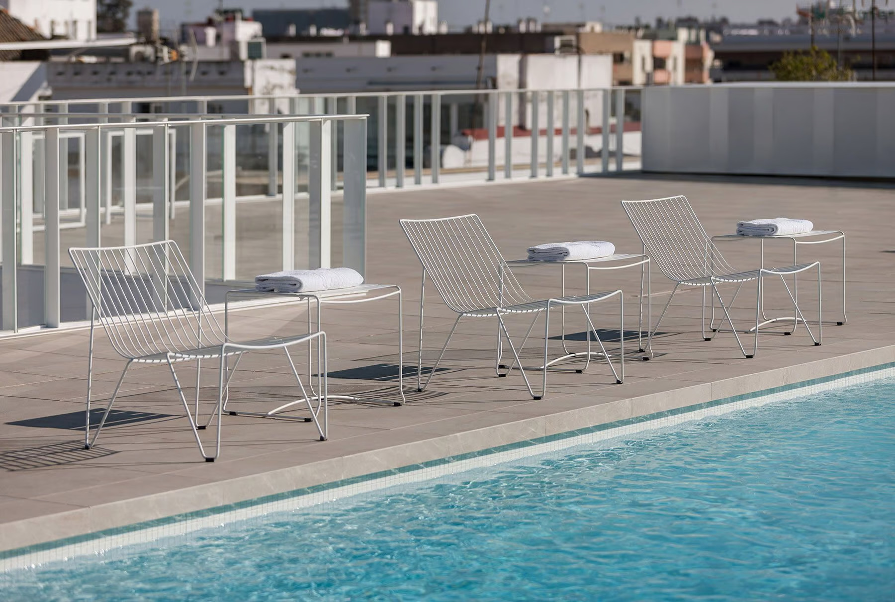 The PORTOFINO collection offers a versatile solution for various settings, including restaurants, conference rooms, coworking spaces, cafés, event venues, and educational institutions. This square metal table, crafted from galvanized wire and finished with a polyester powder coating, is designed for both indoor and outdoor use. Its modern design features wire legs and a rounded tabletop, adding a touch of Mediterranean flair to any space. The collection includes durable seating options, such as ergonomic and stackable chairs, ideal for dining areas and conference rooms. With its vibrant and playful aesthetic, PORTOFINO enhances environments with a unique character, making it a practical choice for diverse applications.