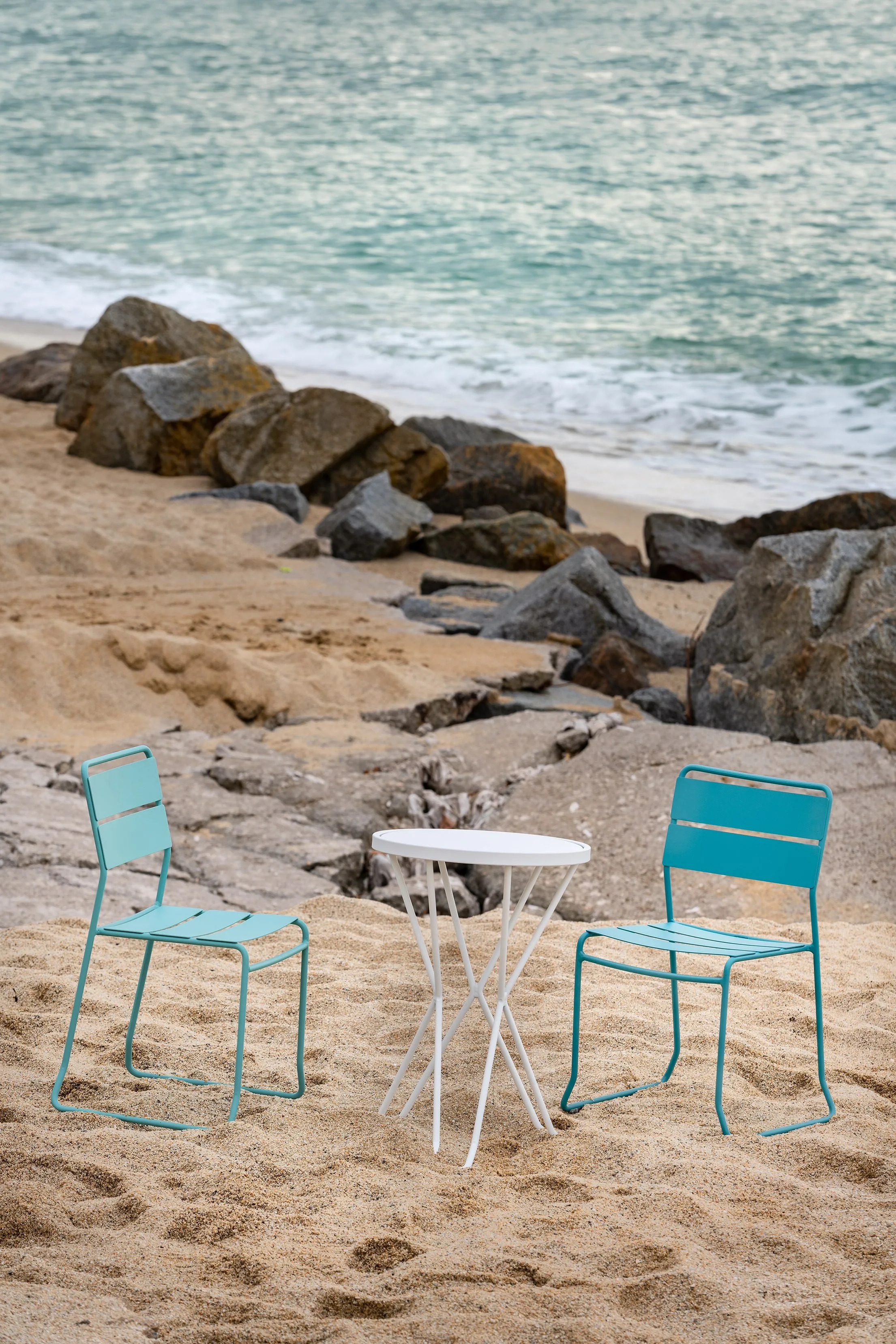The PORTOFINO KIDS collection introduces a vibrant and playful design inspired by the Mediterranean. Featuring the CAPRI table with painted steel and wire legs, this collection offers a rounded tabletop that adds character to any setting. Crafted from galvanized steel and coated with polyester powder, these pieces are designed for durability and intensive use, making them ideal for dining tables in restaurants, café chairs, and conference room furniture. The materials are weather-resistant, ensuring suitability for both indoor and outdoor environments. Additionally, the collection is environmentally conscious, utilizing 100% recycled and recyclable materials. The ergonomic and stackable chairs provide practical and comfortable seating solutions for educational institutions, coworking spaces, and event venues. Sold in sets of four.