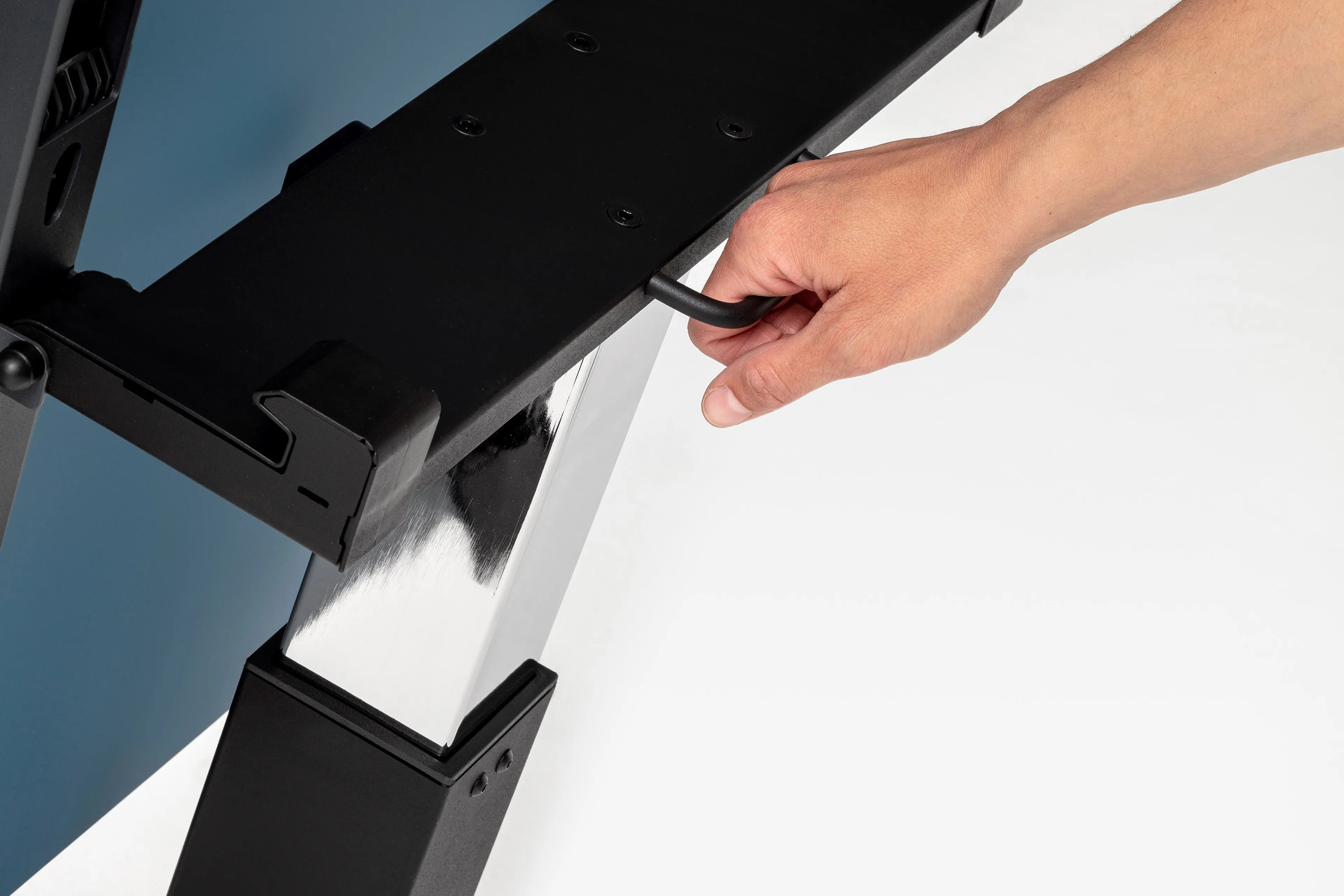 The FOLLOW ME SMALL is a versatile, space-efficient, and height-adjustable table designed for seamless sit-stand functionality. Featuring Mara's innovative patented "no-gravity" system, it operates without electricity or gas pumps, allowing for easy repositioning within any room. Its tilting top and practical castors enable effortless mobility, while its foldable design ensures compact storage in limited spaces. This stackable and robust table is ideal for creating flexible and modern work environments, including corporate offices, coworking spaces, and educational institutions. Inspired by the design of a travel trolley, it includes a functional handle for easy transport and use in various settings. Whether in an office, meeting room, or training area, this table supports ergonomic office chairs, modern office desks, and collaborative workspace furniture, making it a valuable addition to any modular workstation setup.