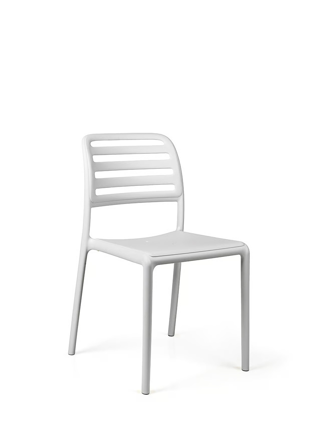 The Costa Bistrot offers a versatile seating solution suitable for restaurants, conference rooms, coworking spaces, cafés, event venues, and educational institutions. This chair features a minimalist design with a slatted backrest and a seamless frame, characterized by rounded profiles and corners. Constructed from recyclable, UV-treated, mass-colored fiberglass resin with a matte finish, it ensures durability and style. The chair is lightweight, stackable, and easy to move, making it a practical choice for dynamic environments. Available in seven colors, it includes non-slip feet for added stability. The dimensions are W. 49 cm, D. 54 cm, with a backrest height of 83 cm and a seat height of 46.5 cm, making it suitable for both indoor and outdoor settings.