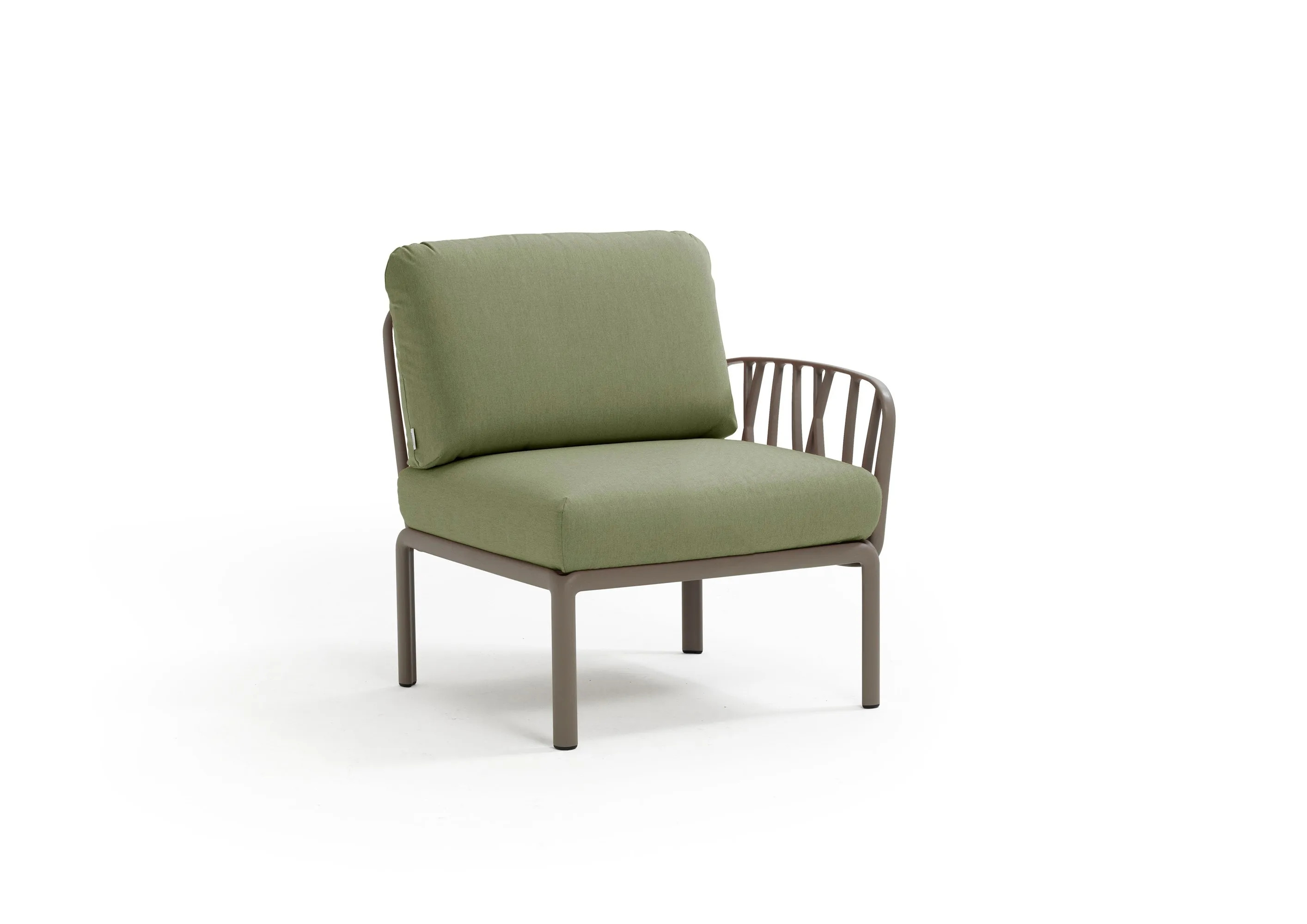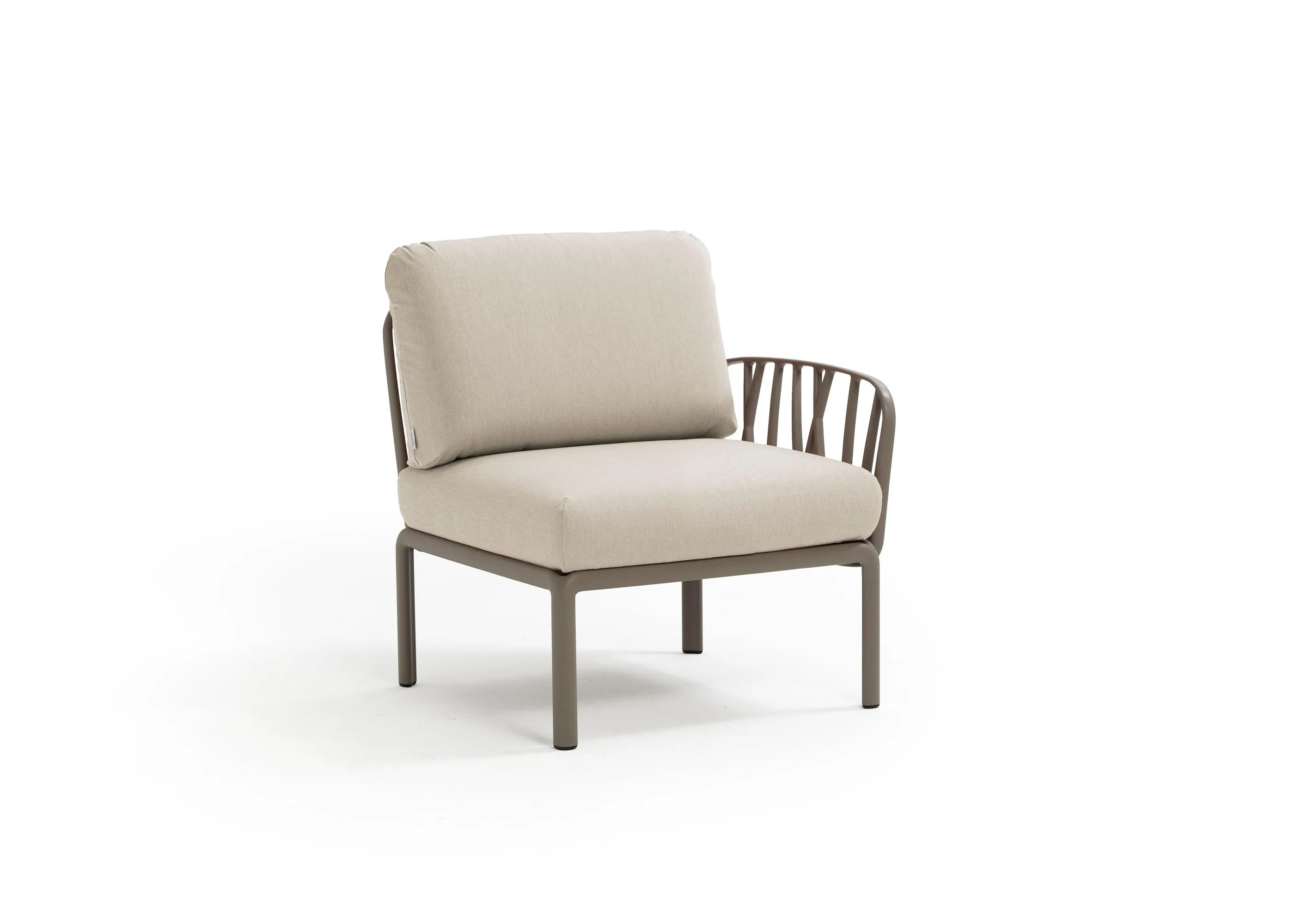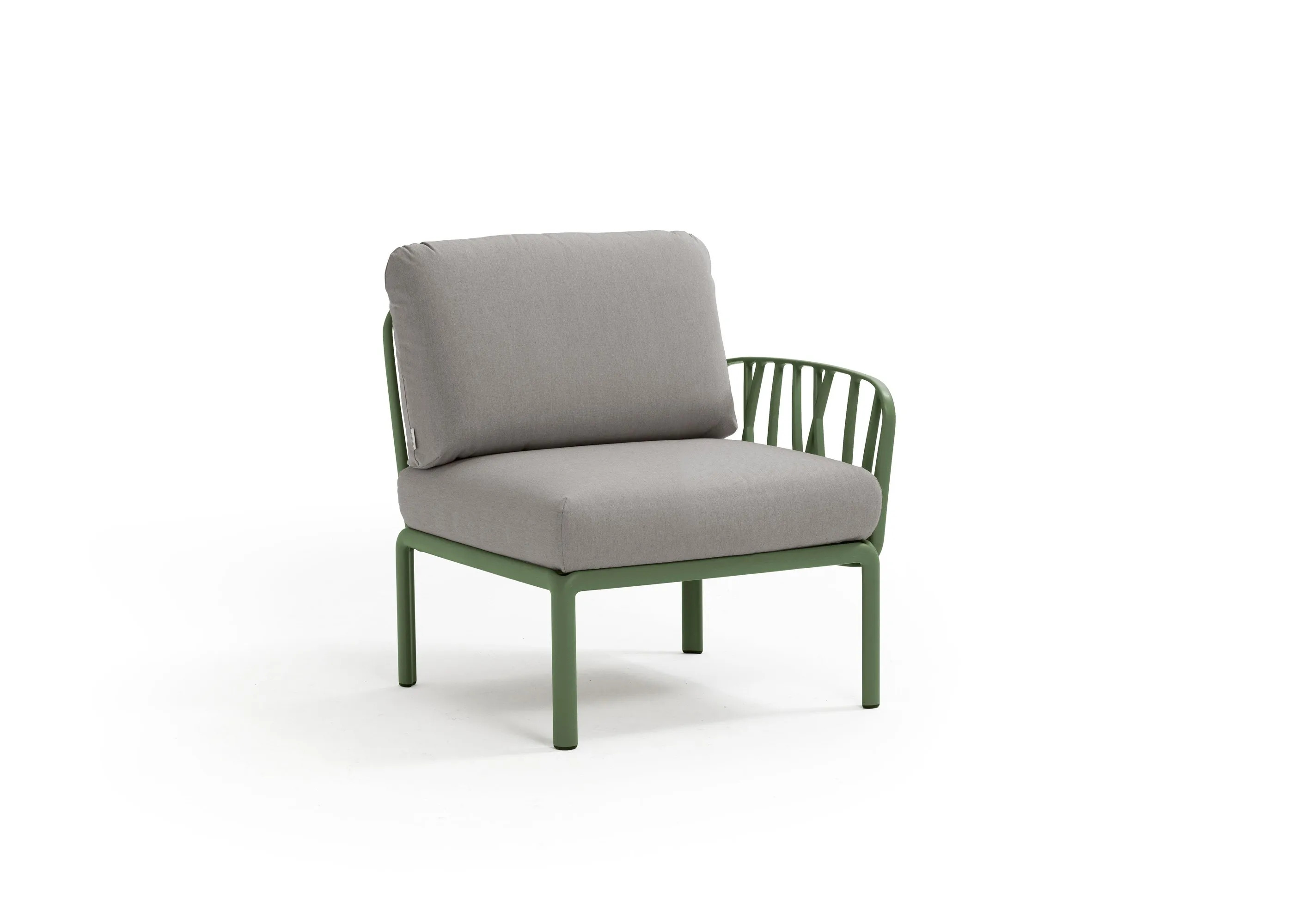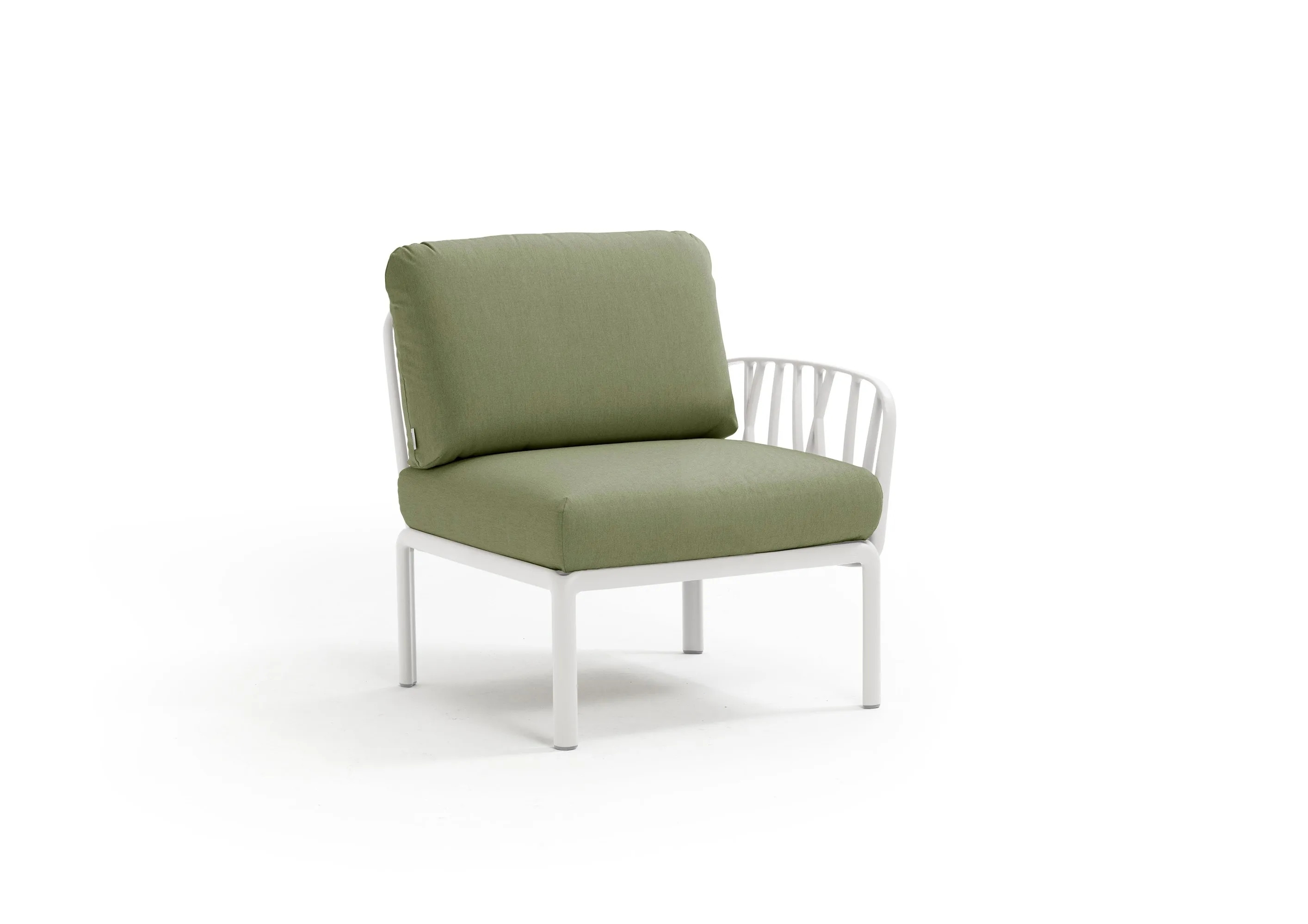 The Komodo collection offers a versatile solution for hotels, cafés, lounges, waiting rooms, and residential interior designers seeking modern lounge furniture. This modular sofa system, crafted from UV-treated fiberglass resin, features a unique lattice design inspired by tree branches. The ergonomic design allows for customizable sofa configurations, with backrests and armrests that can be attached on all sides, providing flexible lounge seating options. Available in white, anthracite, agave, and dove grey, the Komodo's compact furniture design is ideal for both indoor and outdoor settings. The luxury sofas and armchairs come with padded cushions and removable covers in various colors, ensuring comfortable seating solutions. The frame, made from recyclable resin, includes non-slip feet and a matt finish, enhancing its suitability as hotel furniture. The Komodo's modular sofas are perfect for creating endless sequences of stylish and relaxing upholstered armchairs.