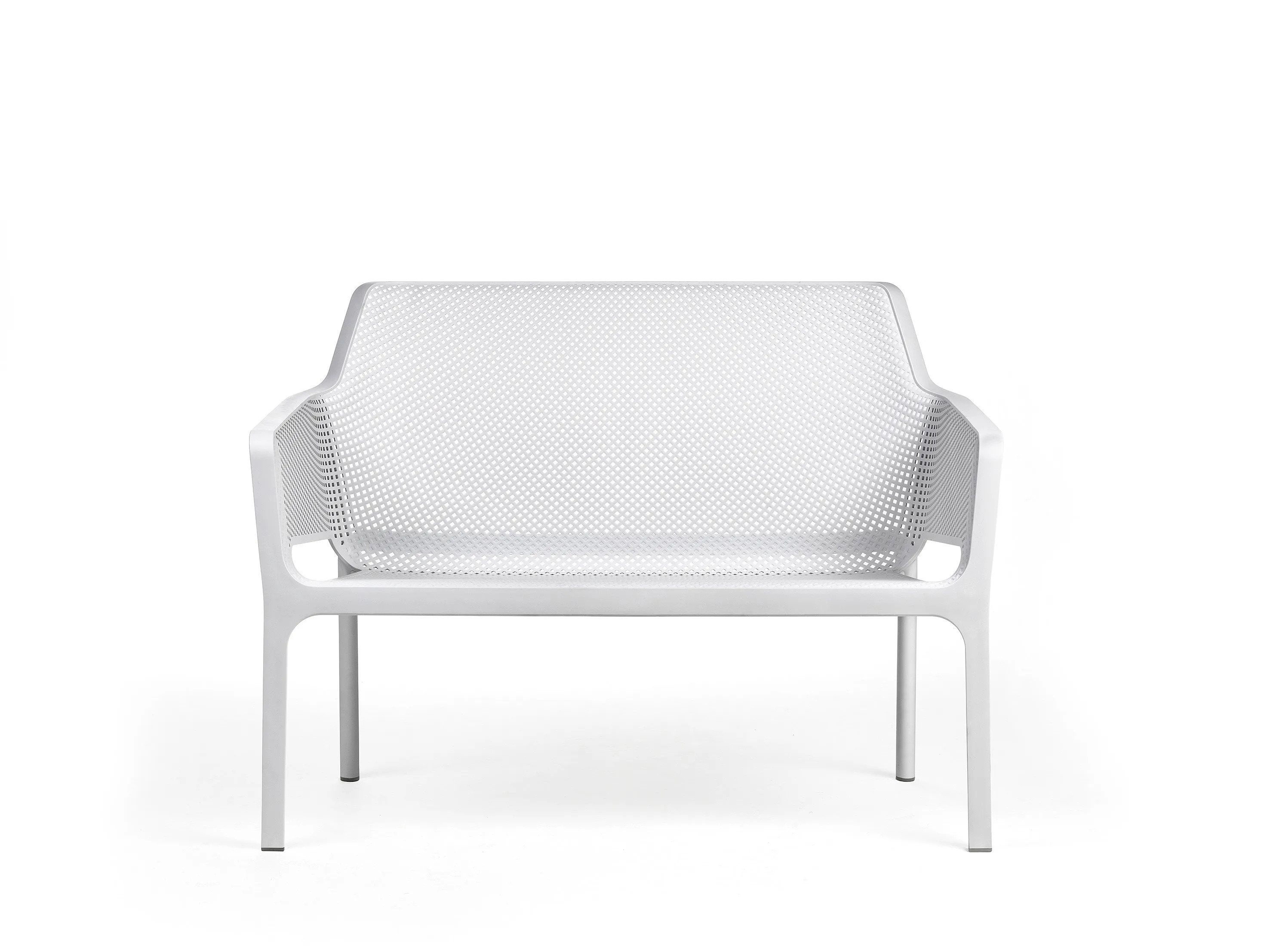 The NET BENCH offers a sophisticated seating solution with its elegant design and precise lines, making it suitable for various settings such as restaurants, conference rooms, coworking spaces, cafés, event venues, and educational institutions. Crafted from non-toxic, antistatic, and fully recyclable fiberglass resin, this bench features a matte finish and a perforated mesh pattern. Its stackable design and non-slip feet enhance practicality, while the availability in six colors allows for versatile styling. Measuring 116 cm in width, 70 cm in depth, and 86 cm in height, with a seat height of 42 cm, it is ideal for both indoor and outdoor environments. This durable seating option complements modern design tables and café chairs, providing ergonomic comfort in any space.