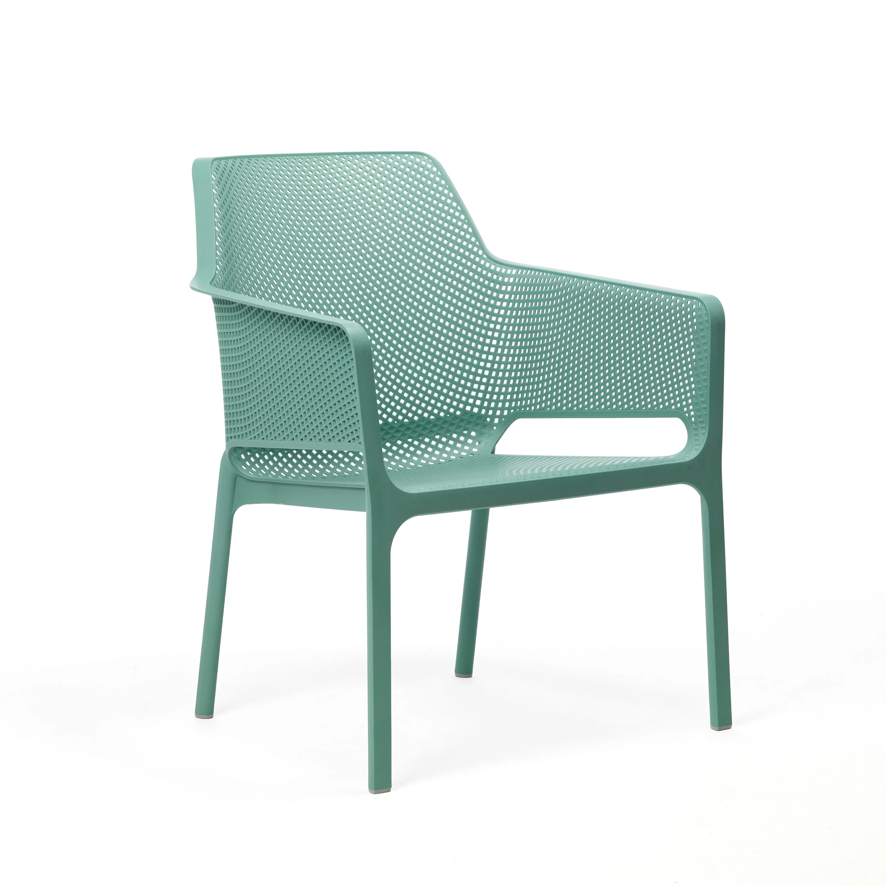 The NET RELAX armchair combines ergonomic design with modern lounge furniture aesthetics, making it a versatile choice for hotels, cafés, lounges, waiting rooms, and residential interiors. Crafted from UV-treated, mass-colored polypropylene fiberglass, this luxury armchair features a single-body structure with a square perforated pattern, achieved through advanced 3D shaping and milling. Its matt finish and slightly rounded edges offer a tactile experience, while the rectangular perimeter band provides seamless arm support. Available in a range of colors, the armchair is complemented by a soft fabric cushion in contrasting hues, enhancing its visual appeal. Suitable for both indoor and outdoor settings, this stackable piece includes non-slip feet and offers customizable upholstery options. Recognized with prestigious awards like the ADI Design Index, Red Dot Design Award, and Good Design Award, the NET RELAX armchair is a testament to innovative design in comfortable seating solutions.