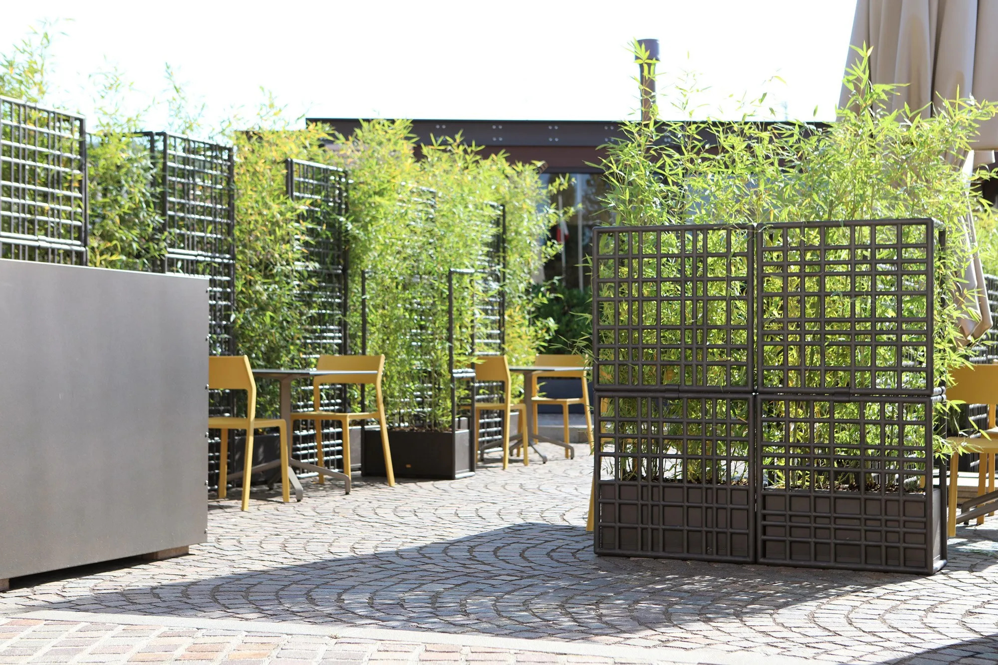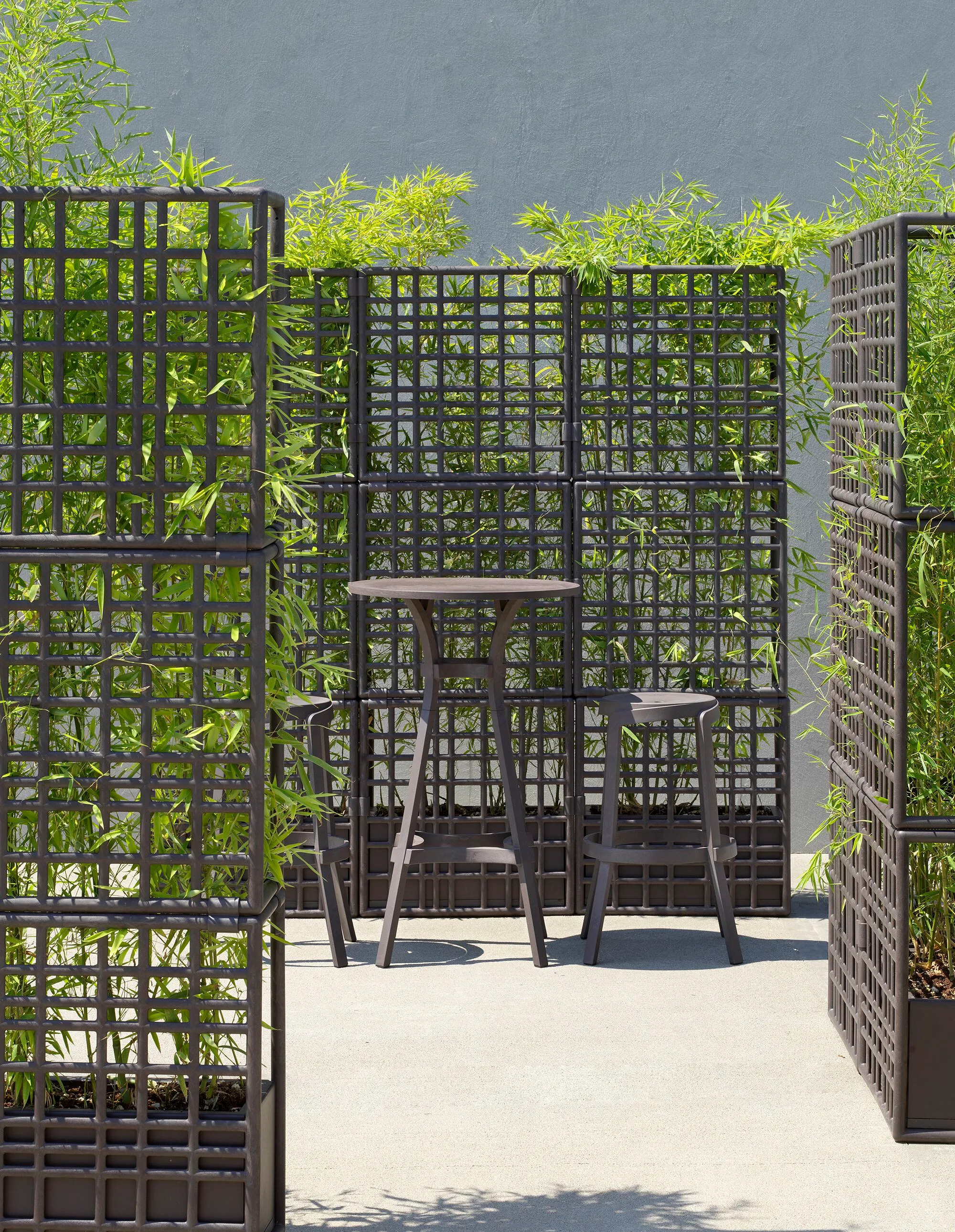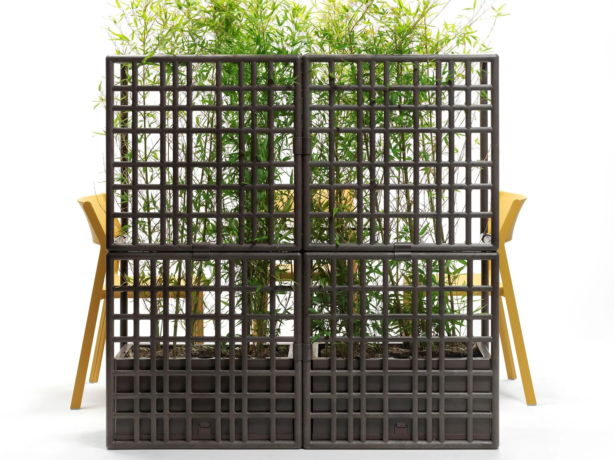 Sipario 2 is a versatile modular partition system crafted from recycled plastic, ideal for creating distinct outdoor spaces in resorts, cafés, restaurants, and beachside hotels. Its elegant asymmetrical wide mesh design allows for various configurations, including linear, split, curved, and closed shapes, reaching heights of over 2 meters. This durable outdoor furniture solution is part of Nardi's Regeneration industrial program, emphasizing sustainability with its recycled and recyclable materials. Available in four matte finishes—terra, gesso, basalto, and cactus—Sipario 2 integrates seamlessly into any setting. The system includes a self-watering planter pot, featuring a 6.5-liter reservoir, ensuring minimal maintenance for plants. Easy to assemble without tools, it offers a practical solution for creating natural, private, and elegant spaces. Recognized with the Red Dot Award 2021 and Green Good Design Award 2021, Sipario 2 is a testament to innovative, all-weather outdoor furniture design.