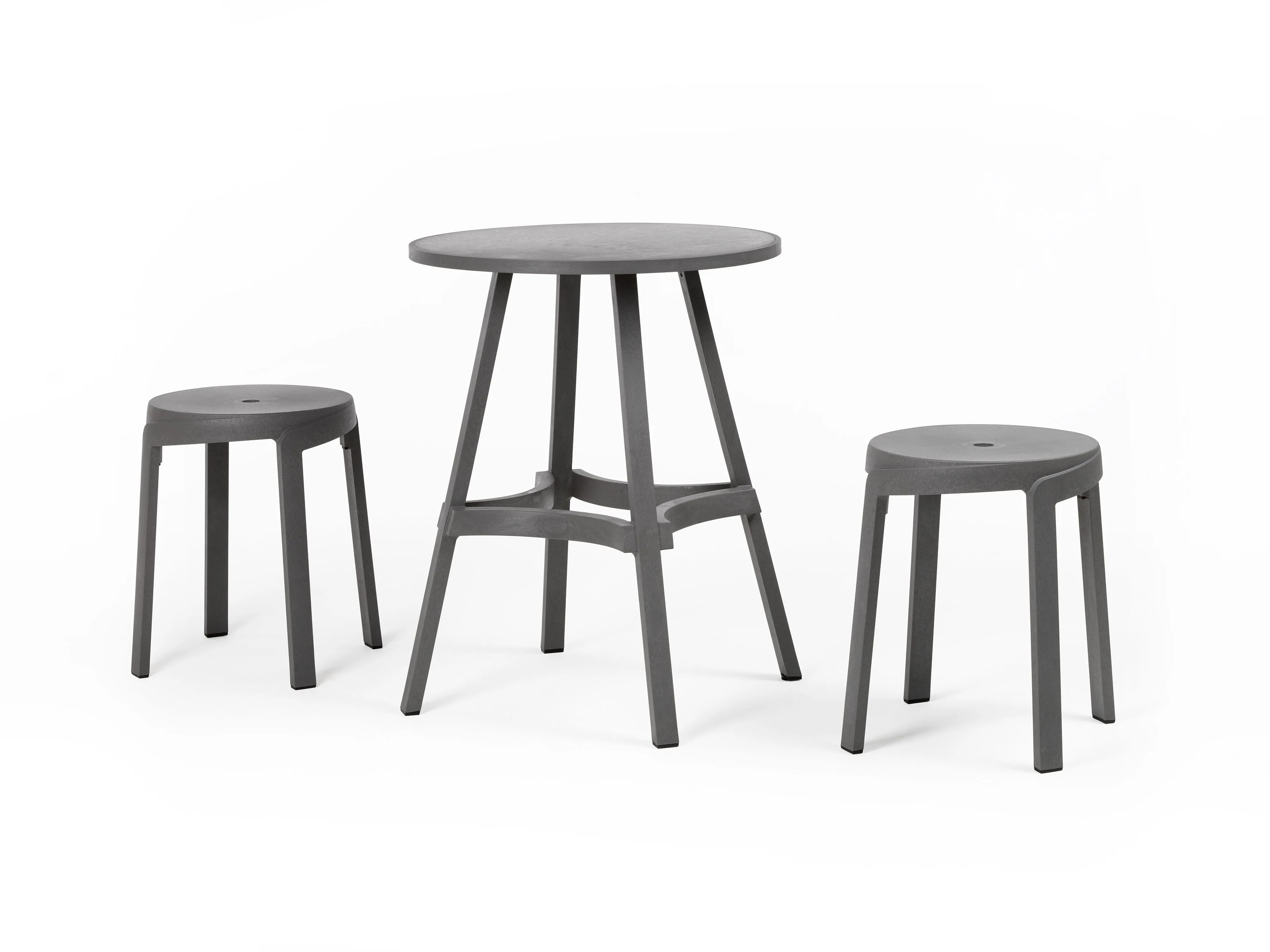 The STACK MINI offers a versatile seating solution for restaurants, conference rooms, coworking spaces, cafés, event venues, and educational institutions. Crafted from recycled plastic, this stool features a linear design with extra thick sections reminiscent of wooden strips. Available in new colors—Gesso, Basalto, and Cactus—alongside the classic Terra, these hues enhance its modern aesthetic and adaptability to various settings. The ergonomic and stackable design ensures efficient use of space, making it ideal for dining tables and café chairs. The stool's innovative spiral design allows for easy stacking, while a central hole facilitates handling and water drainage. Complementing the Stack MINI, the Combo table offers a round top with straight and curved lines, convertible to a high table with an extension. This collection, part of Nardi's Regeneration program, is weatherproof, requires no special maintenance, and has been recognized with the Green Good Design Award 2022.