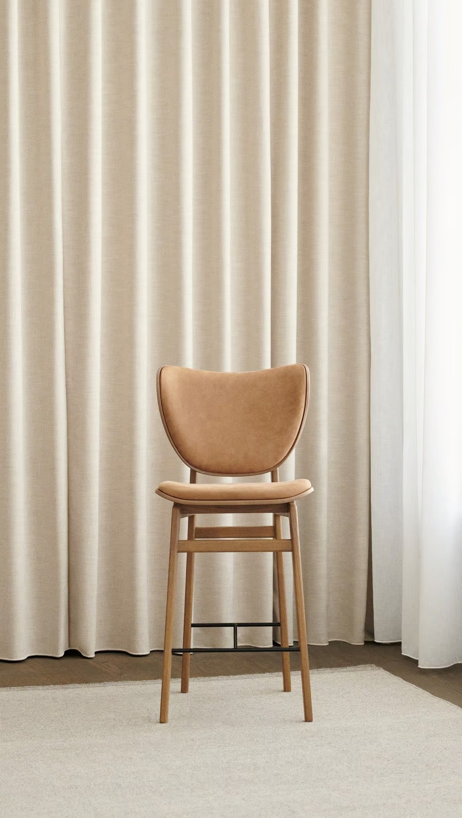 The Elephant Bar leather stool combines a sculptural wood base with a gently curved back, echoing the soft lines of the Elephant series. Designed for dining tables and café settings, this stool offers durable seating with its hand-crafted solid oak frame and laminated oak veneer seat and back. The water-based clear lacquer finish enhances its modern design, making it suitable for conference room furniture and educational institutions. The ergonomic design ensures comfort, while the replaceable upholstery plates add versatility. Ideal for restaurants, coworking spaces, and event venues, this stool provides a practical and stylish seating solution. Made in Latvia, it embodies quality craftsmanship and functionality.