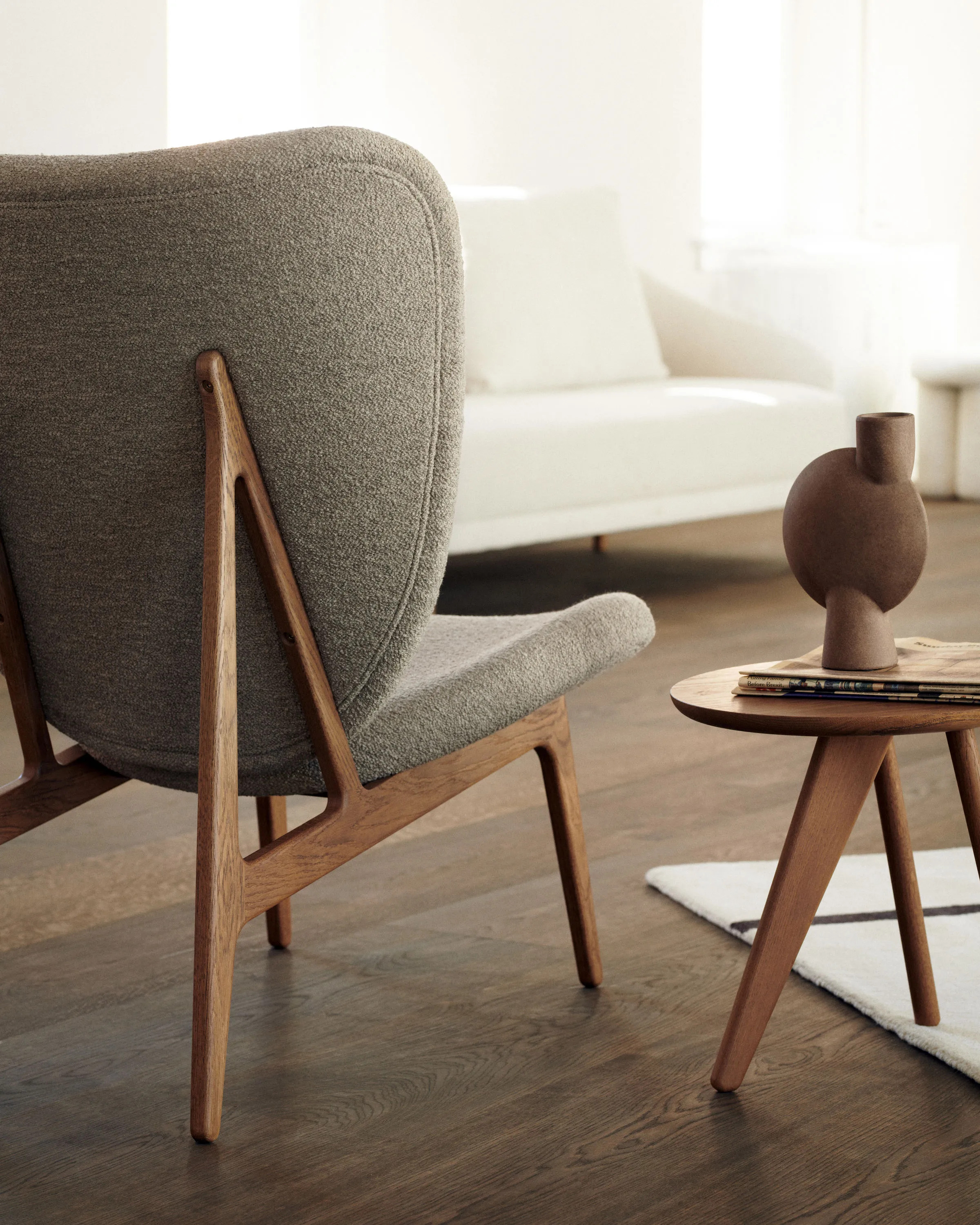 The Elephant Full Upholstery Armchair offers a refined take on modern lounge seating, drawing inspiration from 1950s upholstered chairs and Japanese design. This luxury armchair features a distinctive elephant ear-shaped back that gently curves to provide ergonomic support and comfort. Crafted with a solid oak wood frame, it is available in four finishes: Natural, Dark Stained, Black, and Smoked. The seat and back are constructed from high-quality compression-molded oak veneer shells, ensuring durability and elegance. Upholstery options include leather, wool, and sheepskin, allowing for custom upholstery to suit various interior styles. The seamless leg design enhances the chair's aesthetic, balancing lightness and sturdiness. Ideal for hotels, cafés, lounges, and waiting rooms, this piece complements both compact furniture arrangements and modular sofa designs, offering comfortable seating solutions for diverse spaces.