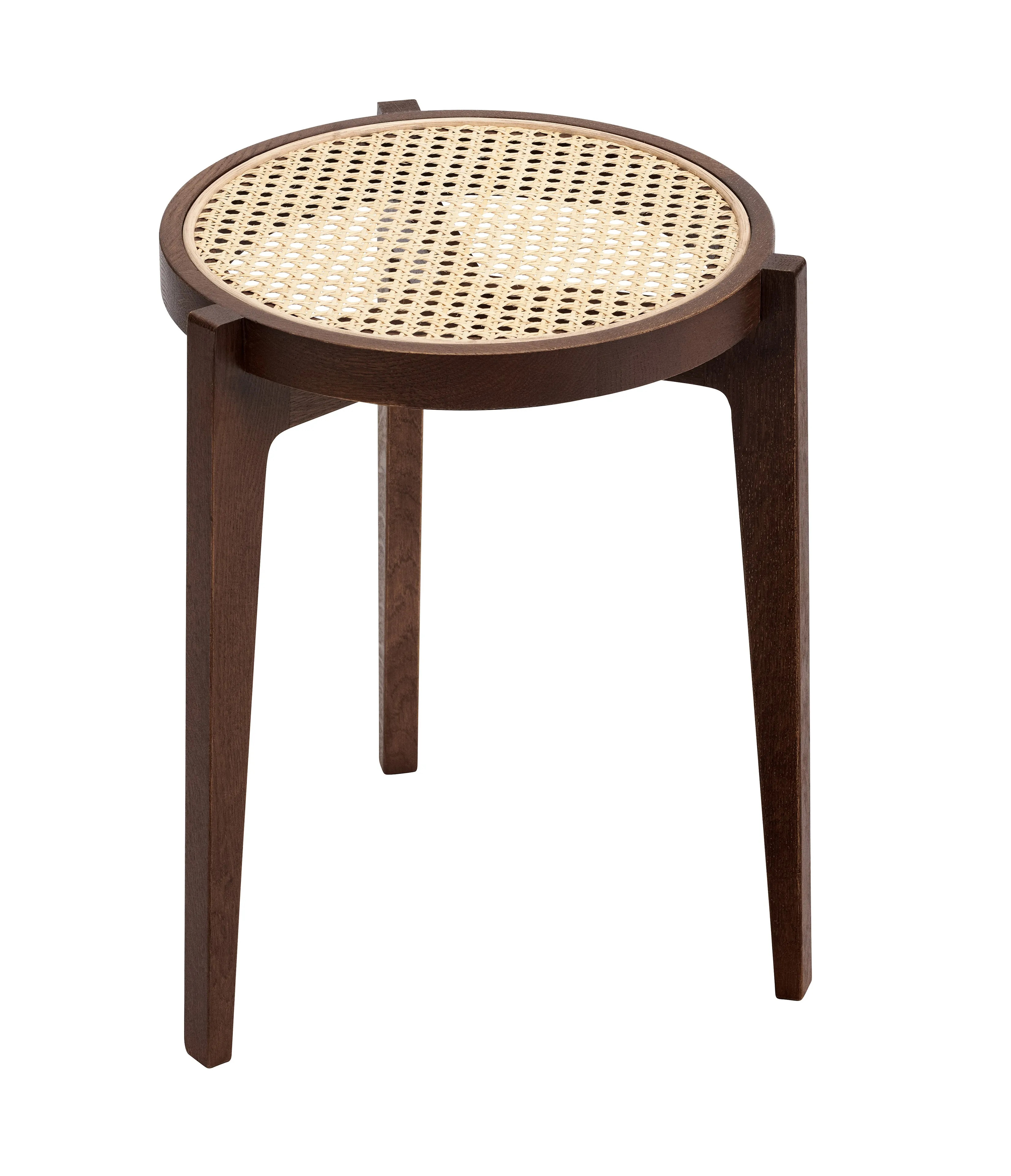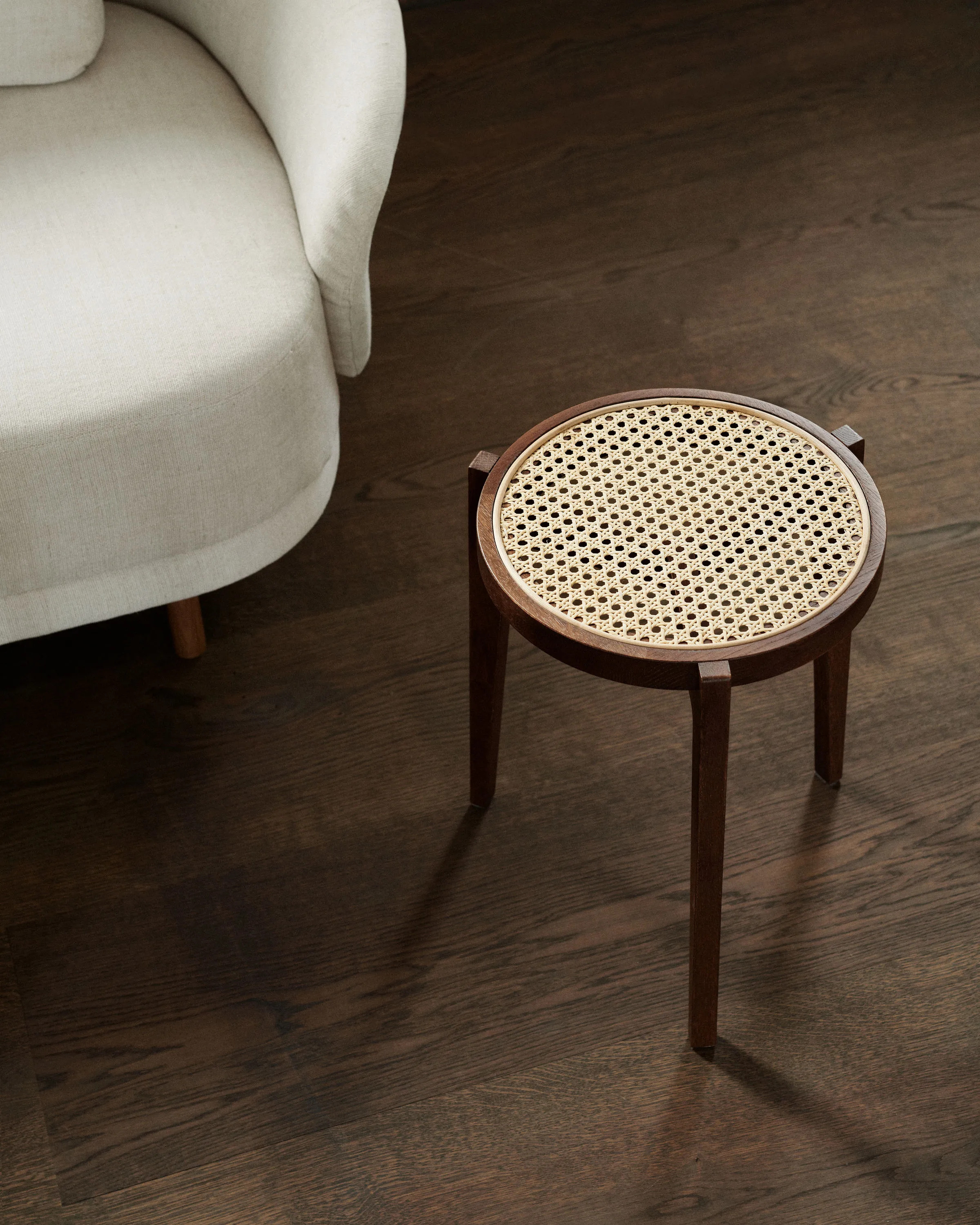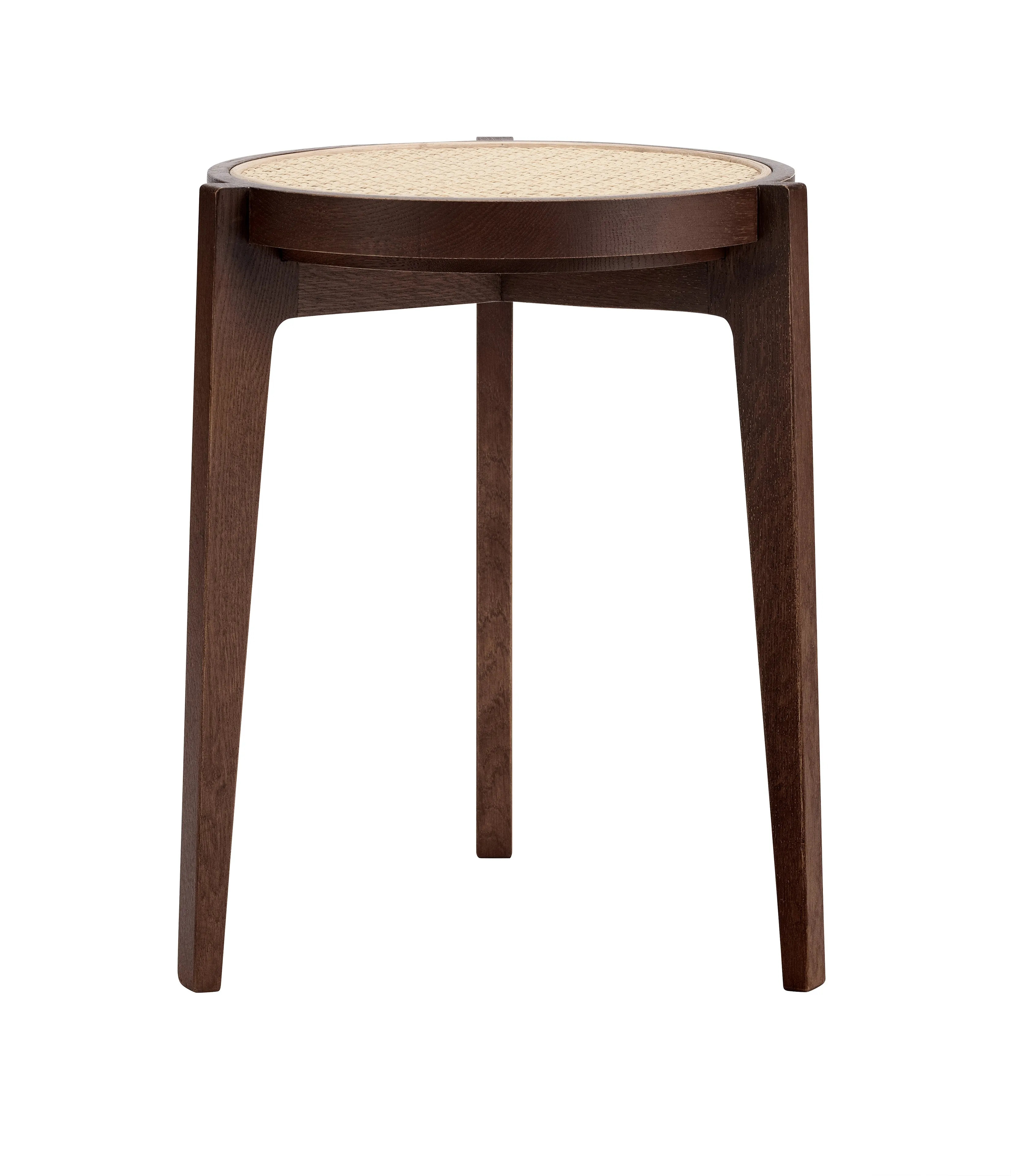 The LE ROI Stool offers versatile functionality, serving as both a seat and a table. Its minimalist design reimagines the classic three-legged stool, crafted from solid oak with an inlaid French rattan mesh. This piece is ideal for dining tables, café settings, and conference room furniture, providing durable seating with a modern design. Available in Natural and Dark Stained oak, the stool's stackable feature allows for efficient space-saving, making it suitable for coworking spaces, event venues, and educational institutions. The combination of oak and French rattan ensures both aesthetic appeal and ergonomic comfort, fitting seamlessly into various environments.