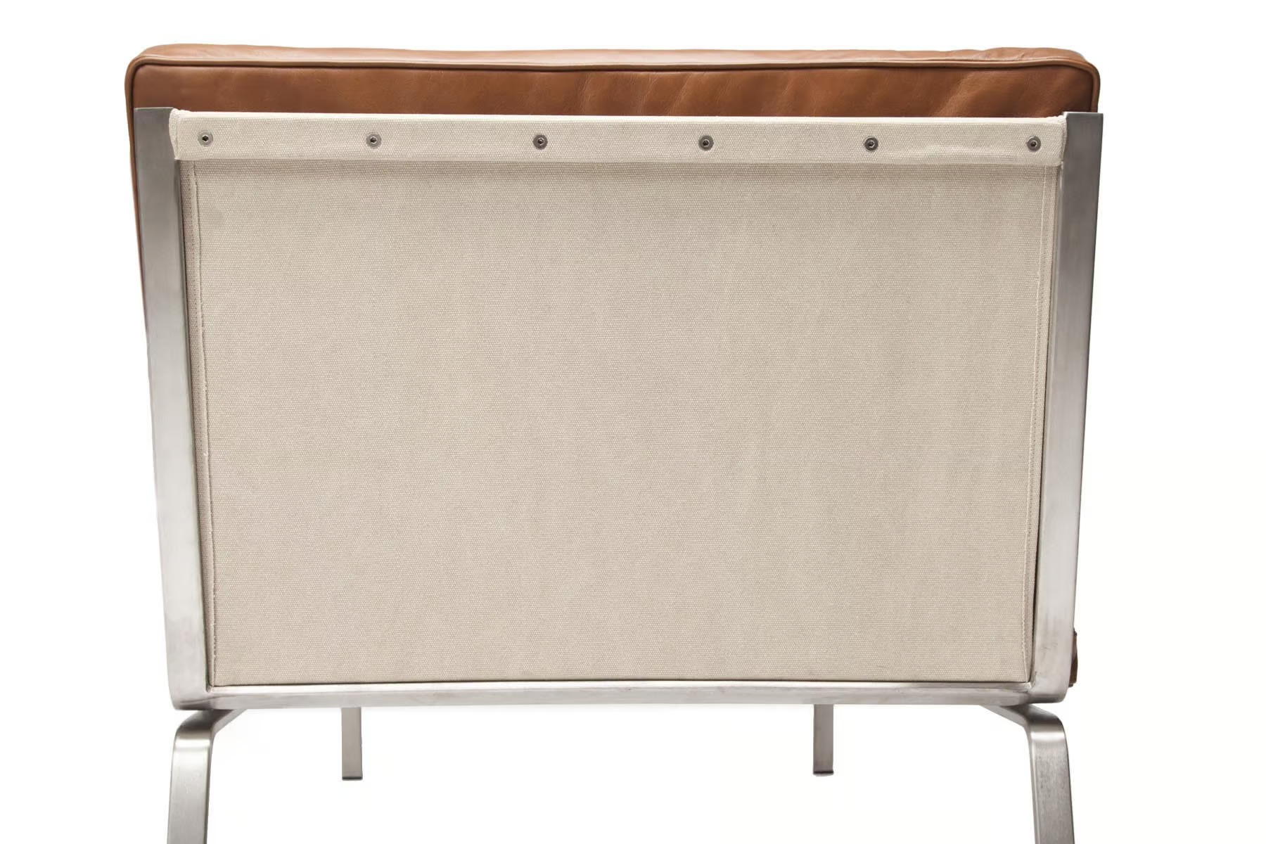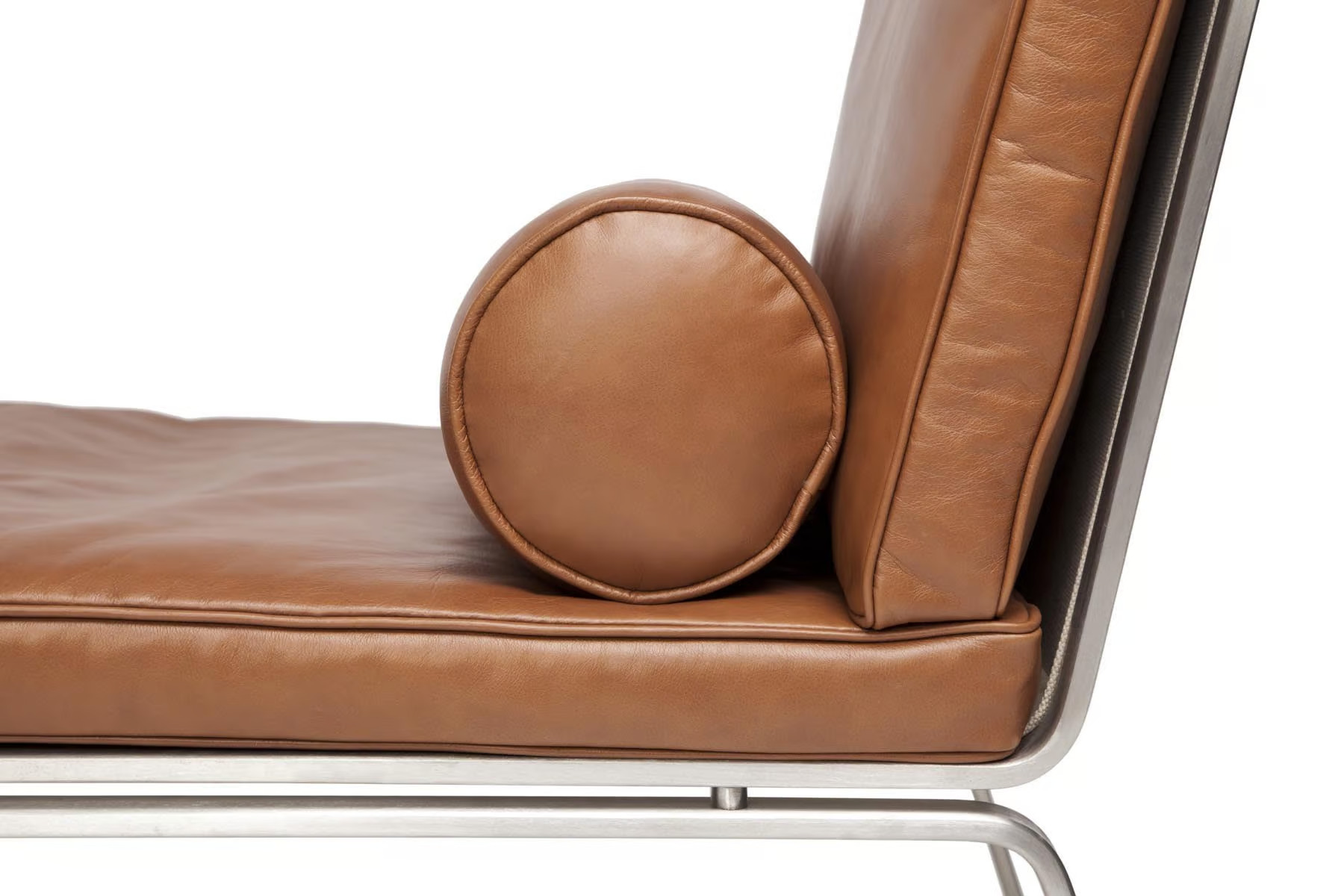 The MAN Leather Day Bed showcases a stainless steel frame complemented by reinforced canvas, offering a blend of durability and style. Its loose cushions are available in a range of leather options, providing customizable upholstery to suit various interior themes. Drawing inspiration from the 1950s-1960s Danish design, this piece reflects the Bauhaus influence with its emphasis on simple, clean lines and minimal detailing. The distinctive parallel frame and visible material junctions highlight its construction, making it a versatile choice for both open spaces and cozy environments. Ideal for hotels, cafés, lounges, and waiting rooms, this modern lounge furniture piece offers comfortable seating solutions, combining luxury sofas and armchairs with ergonomic design. Its modular nature makes it suitable for compact spaces and adaptable for residential interior designers seeking customizable sofa designs.