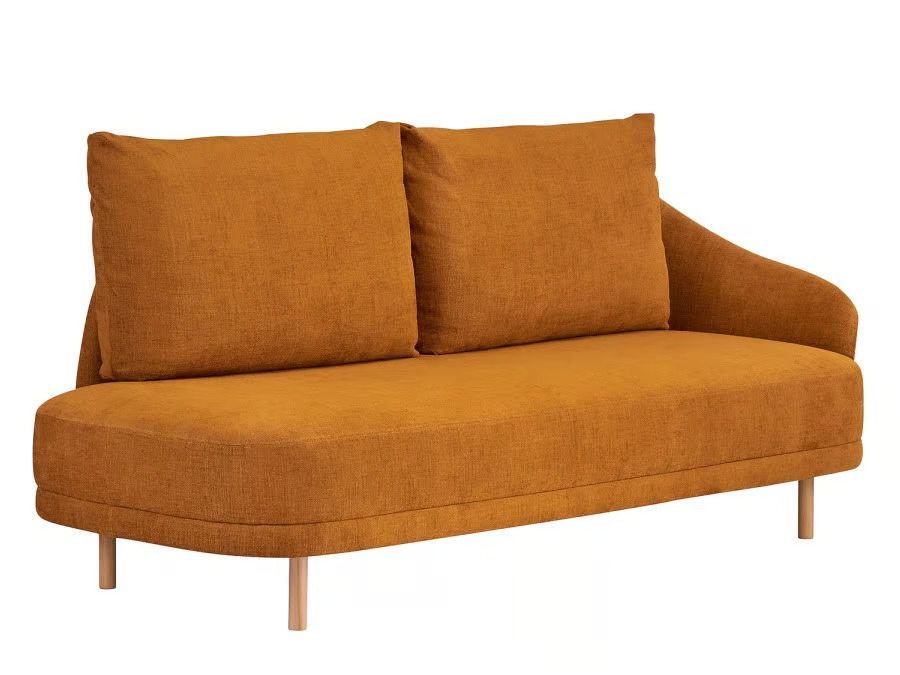 The NEW WAVE sofa embodies a minimalist aesthetic, drawing inspiration from 1950s Danish design. Its elegant form is composed of three distinct elements: a base, back, and cushion, each crafted with precision for functionality. The sofa's sleek silhouette is complemented by plush cushions, making it suitable for diverse environments such as hotel lobbies, office spaces, or residential interiors. Available in two configurations—Two-Seater and Open-End—this piece offers a range of custom upholstery options, including Burned Orange, Antracite, and Sand. The legs, available in Oak with finishes like Black, Natural, Dark Stained, and Smoked, are accented with brass. The combination of carefully selected foam and nozak springs ensures ergonomic comfort, making it an ideal choice for luxury seating in lounges and waiting areas.