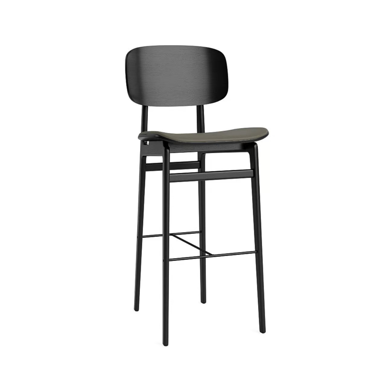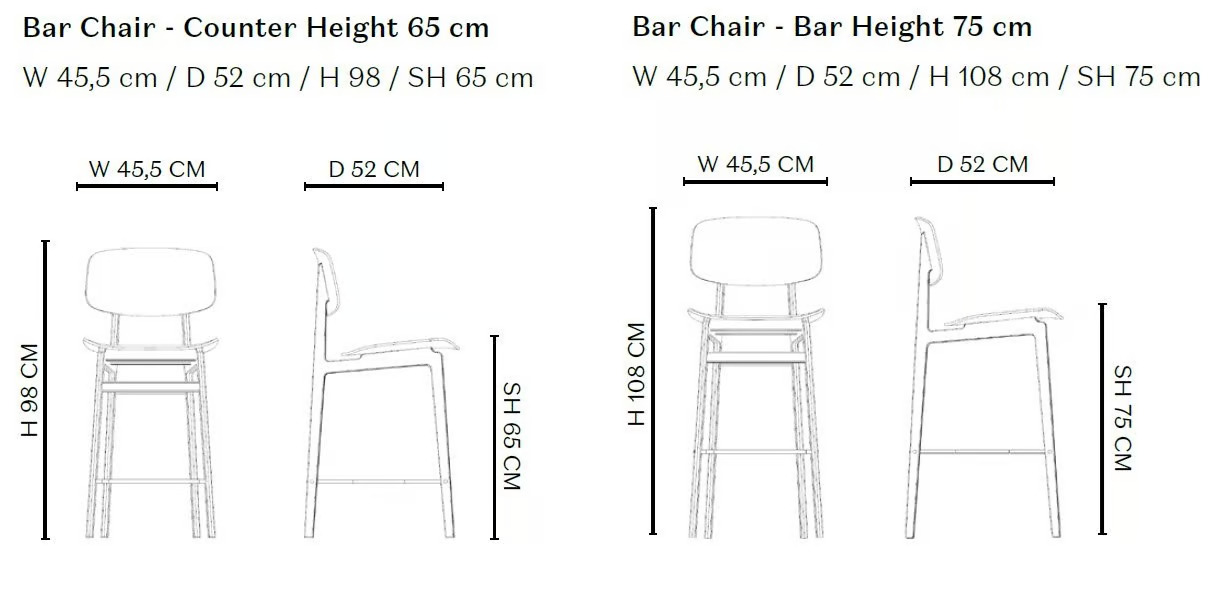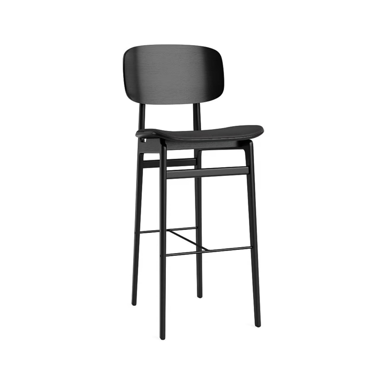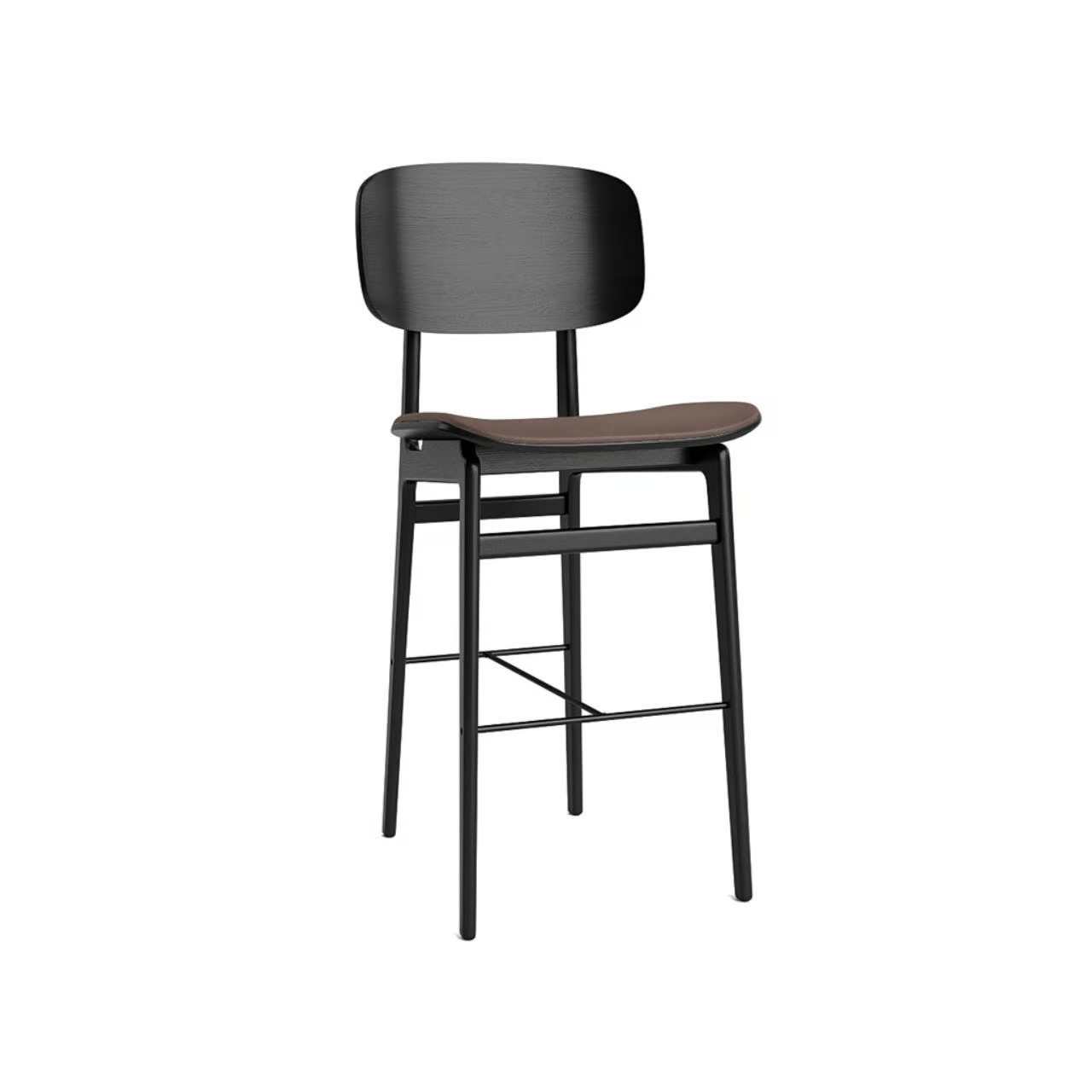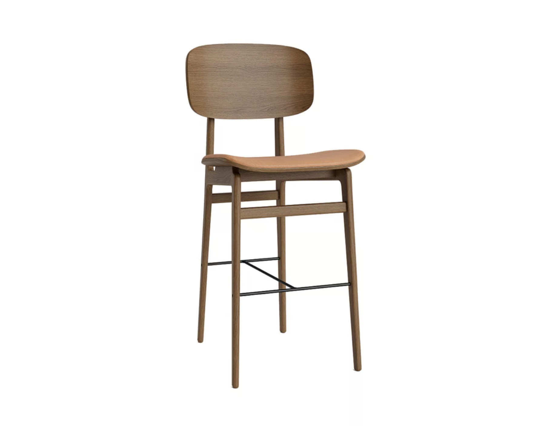 The NY11 Barstool, an elevated version of the classic NY11 Chair, draws inspiration from traditional Danish school seating, offering both comfort and durability. Ideal for dining tables in restaurants, conference room furniture, and café chairs, this barstool features a robust frame crafted from solid white oak and a seat made of laminated oak veneer. The visible wood grain highlights the quality materials, providing a natural aesthetic. Available with or without seat upholstery, the barstool offers replaceable upholstery plates for easy maintenance. The leather variant includes a premium leather seat cushion from Sørensen Leather. Available in three heights, it suits various settings, from coworking spaces to educational institutions. Frame options include Natural Oak, Dark Stained Oak, Black Oak, and Smoked Oak, ensuring a versatile fit for modern design tables and stackable chairs in event venues and banquet halls.
