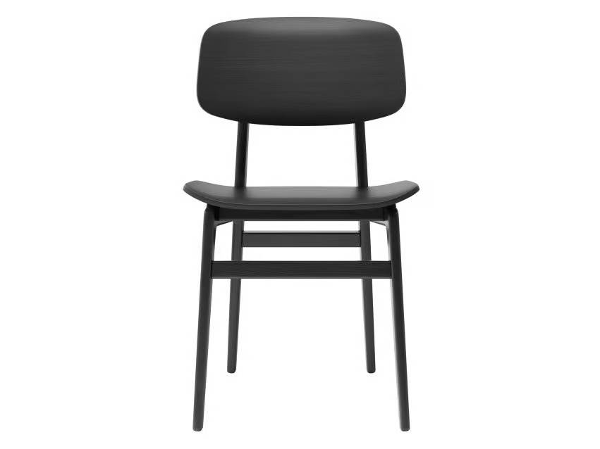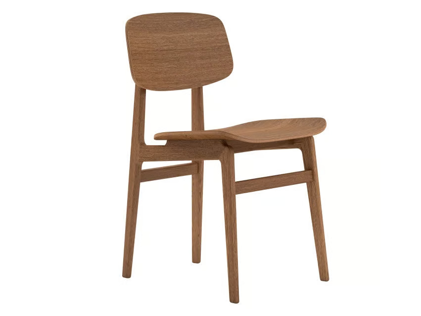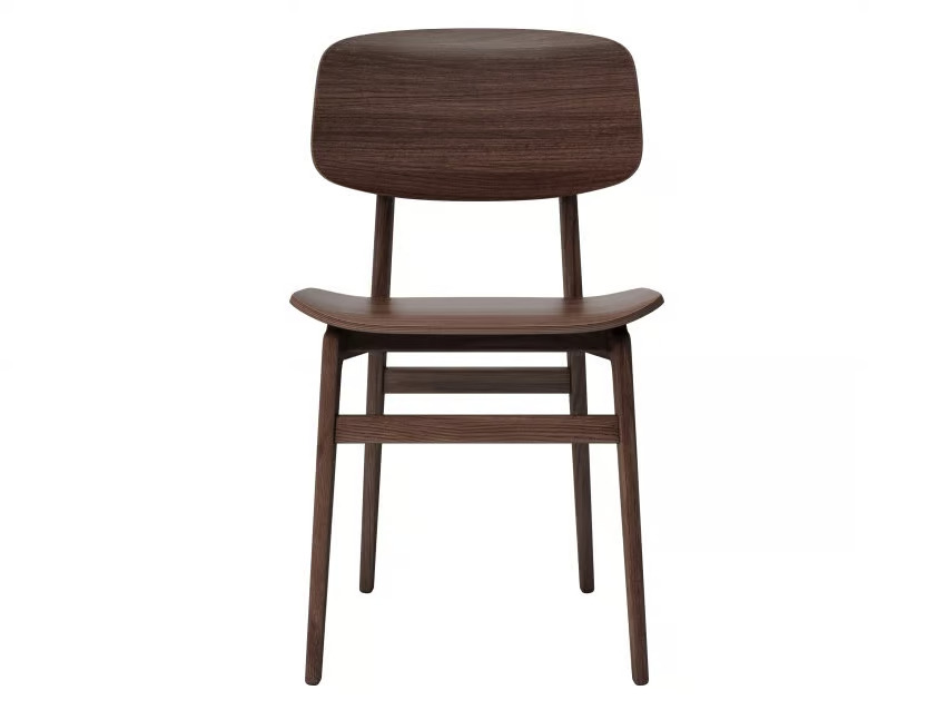 The NY11 Chair, crafted from solid oak, draws inspiration from traditional Danish school seating, offering a blend of comfort and durability ideal for various settings. Its design, conceived by Rune Krøjgaard and Knut Bendik Humlevik, presents a modern interpretation of Scandinavian style, making it suitable for dining tables, conference rooms, and cafés. The chair's structure showcases visible wood grains, highlighting the quality of its materials and lending a natural aesthetic. Featuring a laminated oak veneer seat and back, the NY11 is available with optional leather upholstery for enhanced comfort. Its stackable design makes it a practical choice for educational institutions and event venues. Available in Natural, Dark Stained, Black, and Smoked finishes, this ergonomic chair seamlessly integrates into any modern design table setting.