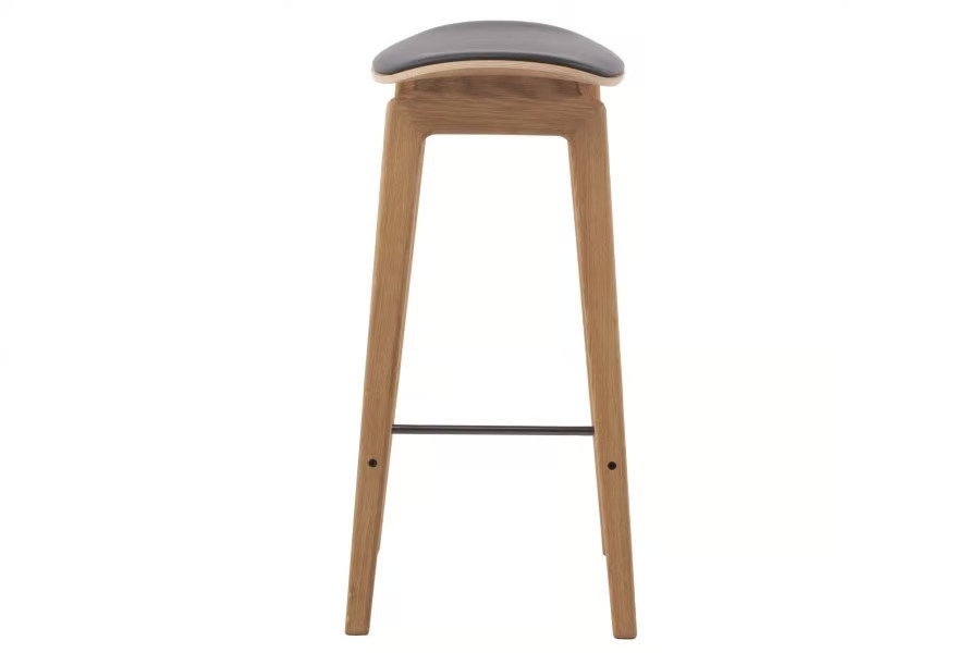 The NY11 Stool with integrated cushion offers a blend of traditional Danish design and modern functionality, ideal for diverse environments such as restaurants, conference rooms, coworking spaces, cafés, event venues, and educational institutions. Crafted with a solid white oak frame and a laminated oak veneer seat, this stool ensures durability and style. The leather edition features a premium Sørensen Leather cushion, providing ergonomic comfort. Available in three heights, it complements dining tables and café chairs, fitting seamlessly into any setting. The stool's stackable design enhances its practicality for conference room furniture and banquet halls. Frame variations include Natural Oak, Dark Stained Oak, Black Oak, and Smoked Oak, allowing for versatile integration with modern design tables and other furniture.