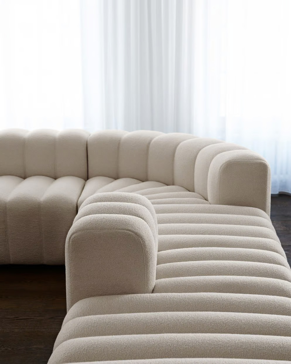Inspired by the expressive aesthetics of the 1970s, the STUDIO Armchair offers a modern take on classic design. This luxury armchair features a modular system, allowing for endless configurations to suit diverse environments, from intimate residential spaces to expansive public areas. Its bold, fluted upholstery, reminiscent of late 70s styles, is refined with a contemporary touch, providing a distinctive identity. Each module is crafted with a plywood structure, elastic belts, and a soft foam mix, ensuring ergonomic comfort. The armrest cushion is adjustable, enhancing the versatility of the design. With a 360-degree finish, each module can stand alone or be reversed to form a two-sided sofa using the Click-Link system. Available in a range of high-quality eco-fabrics or Sørensen Leather, this Italian-made piece is ideal for hotels, cafés, lounges, and waiting rooms, offering customizable seating solutions for modern interiors.