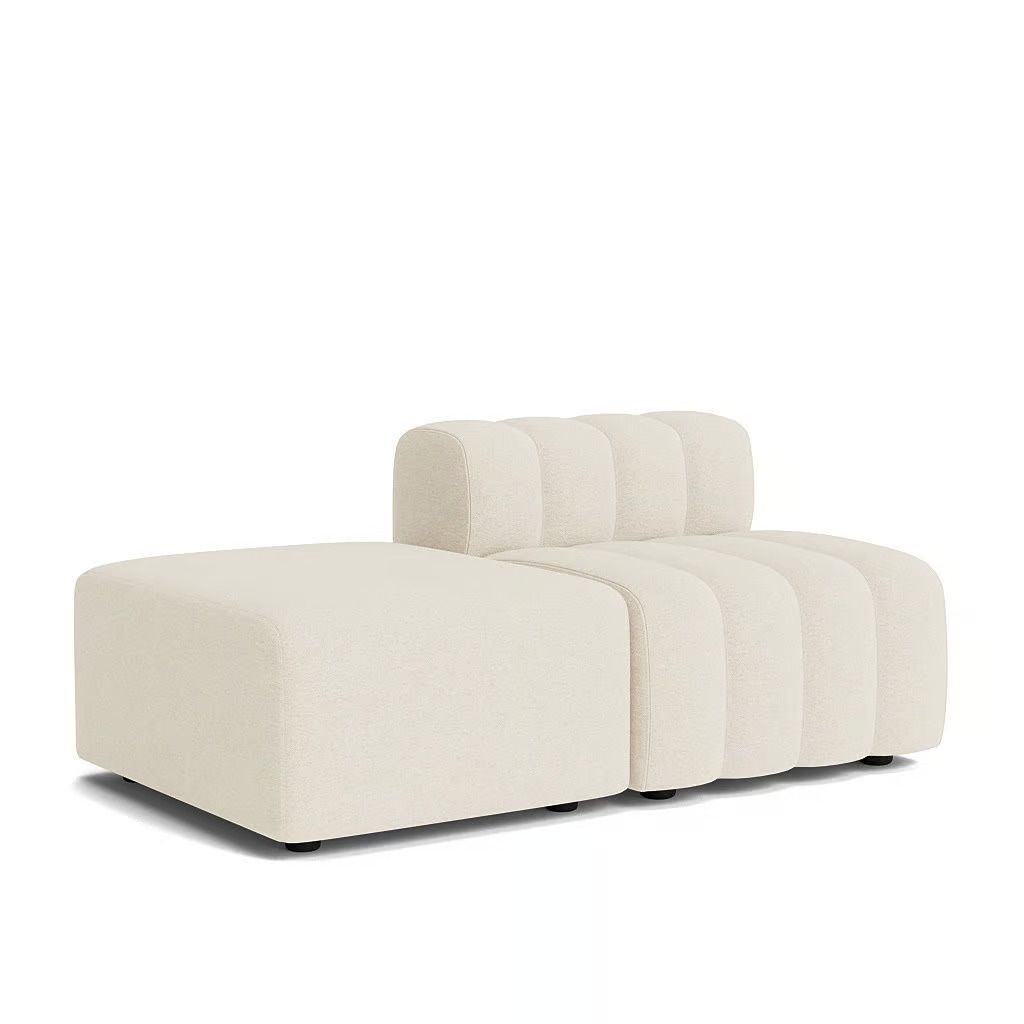 The STUDIO Pouf is a fabric seating solution that pays homage to the expressive aesthetics of the 1970s. Its modular design offers endless configurations, making it suitable for diverse environments, from intimate residential spaces to expansive public areas. The collection is distinguished by its bold, fluted upholstery, inspired by late 70s sofa styles, yet refined for a modern touch. Each module features soft, inviting lines, perfect for socializing or relaxing. The movable armrest cushion enhances versatility, while the plywood structure with elastic belts and foam ensures durability. With a 360-degree finish, each module can stand alone or be reversed to create a two-sided sofa. The Click-Link system allows seamless connection of modules. Available in a range of high-quality eco-fabrics or Sørensen Leather, this Italian-made piece embodies luxury and comfort.