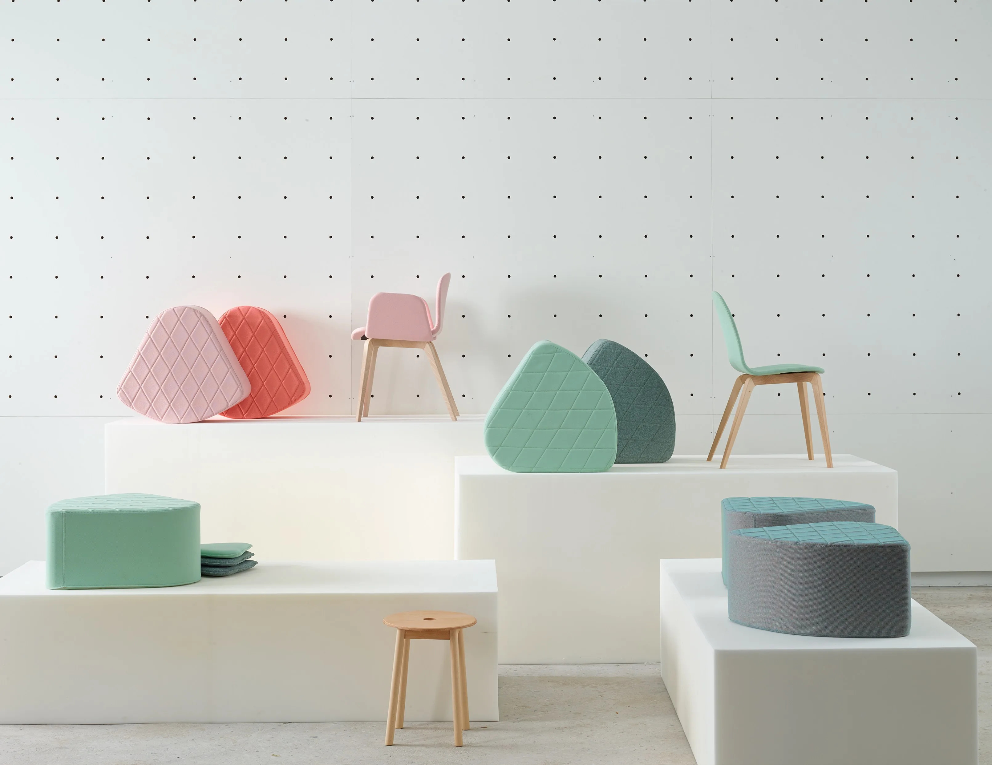 The AIA Modular Pouf offers a versatile seating solution, ideal for hotels, cafés, lounges, waiting rooms, and residential interiors. Its unique triangular shape can stand alone as a comfortable piece or be combined in groups of six to form a circular arrangement, providing flexible lounge seating options. This modern lounge furniture piece is crafted with attention to detail, featuring fine seam work and available in a variety of colors to match any decor. The ergonomic design ensures comfort, while the option for custom upholstery allows for personalized luxury. Perfect for compact spaces, these modular sofas and upholstered armchairs seamlessly integrate into any setting, offering both style and functionality.