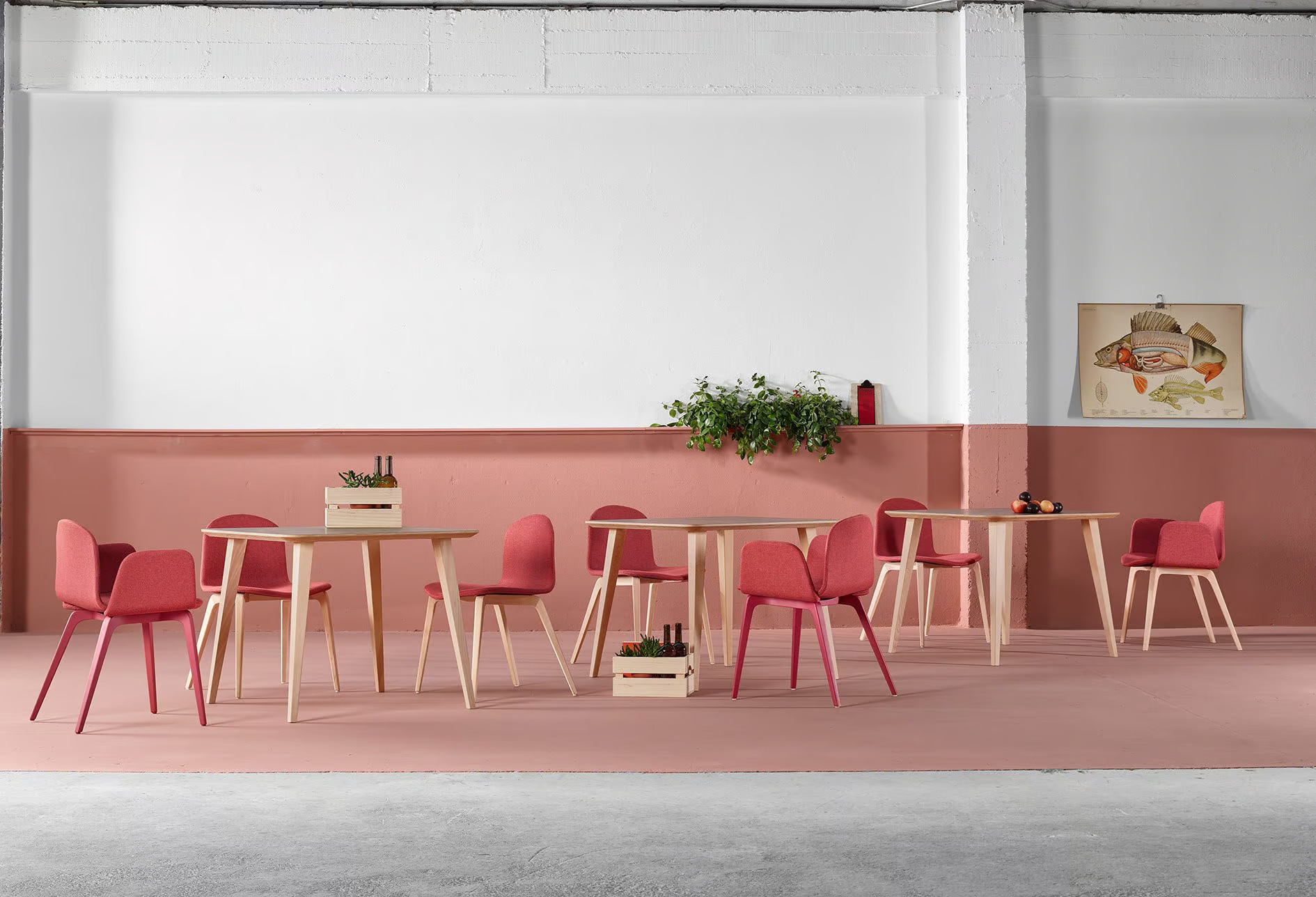 The BOB XL Fabric Chair is designed to seamlessly integrate into various environments such as restaurants, conference rooms, coworking spaces, cafés, event venues, and educational institutions. Featuring a robust beech structure, this chair offers a choice between a wooden seat or a fully upholstered option, ensuring both comfort and style. Its modern design complements dining tables and café settings, while its ergonomic build supports long hours of use. The BOB XL collection includes a range of chairs, stools, and tables crafted from wood and steel, available in multiple configurations. These stackable chairs provide a practical solution for spaces requiring flexible and durable seating arrangements, making them ideal for conference room furniture and other dynamic settings.