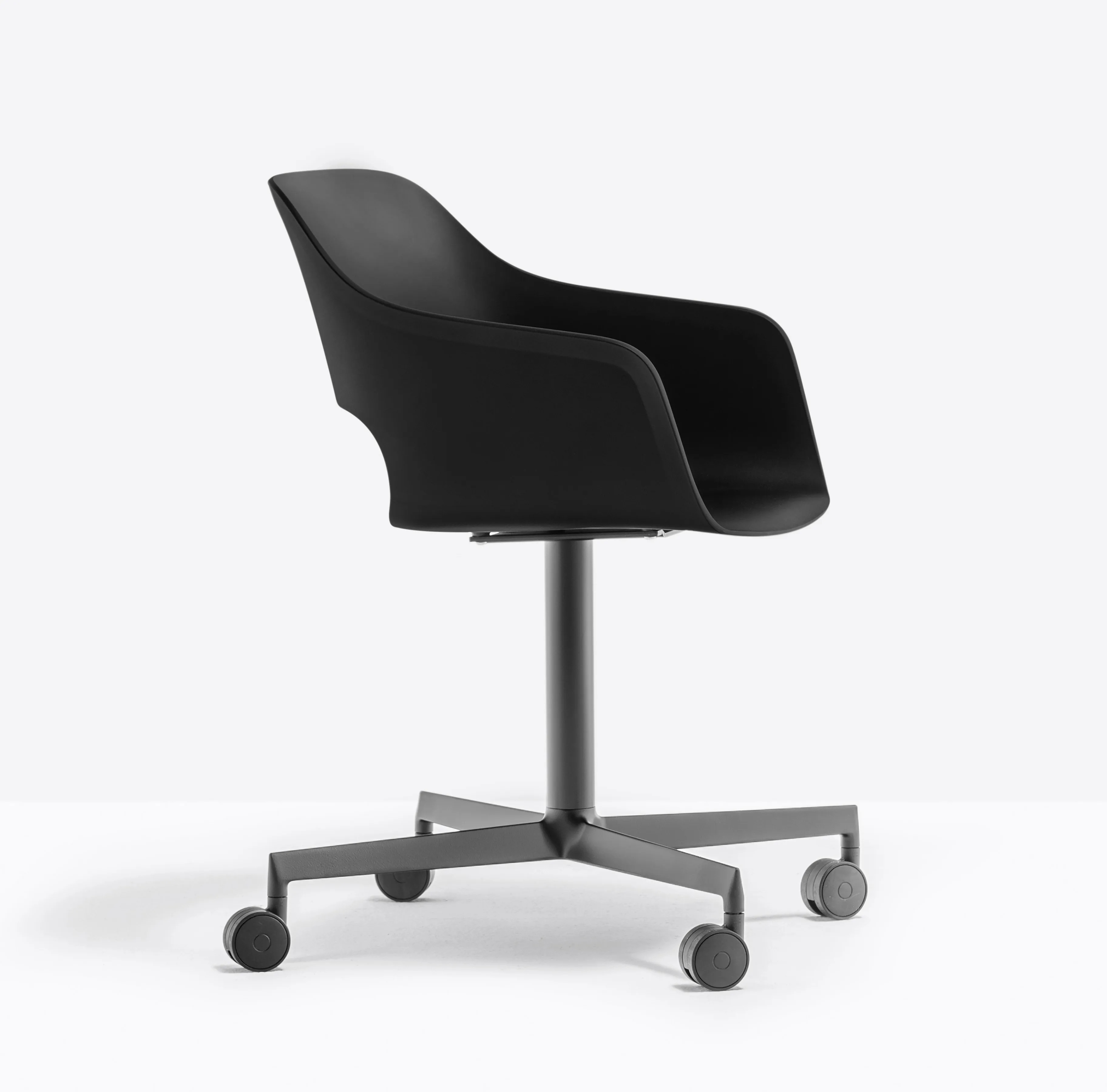 The BABILA 2775 seamlessly blends tradition with innovation, offering a versatile solution for various settings such as restaurants, conference rooms, coworking spaces, cafés, event venues, and educational institutions. This collection is characterized by its straightforward design and timeless appeal. The armchair features a polypropylene shell, providing ergonomic support, while its steel frame ensures durability. The die-cast four-star aluminum base with castors enhances mobility, making it ideal for dynamic environments. Its stackable design allows for efficient storage, catering to spaces that require flexible seating arrangements. The BABILA 2775 is a perfect addition to modern design tables, offering both style and functionality as part of your dining tables or conference room furniture setup.