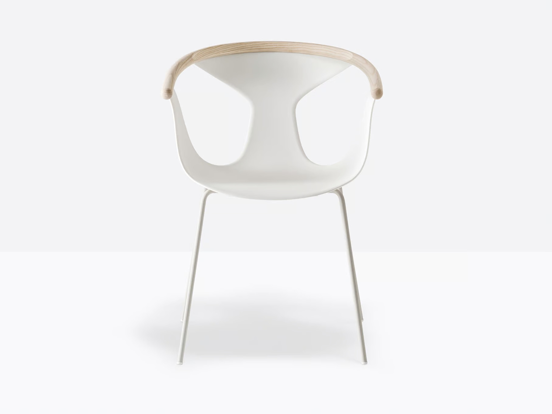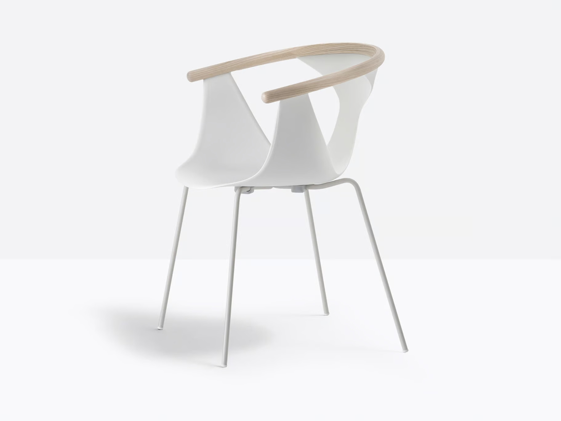 The FOX 3726 is a versatile addition to any restaurant, conference room, coworking space, café, event venue, or educational institution. This collection features modern design tables and café chairs that combine style with functionality. The armchair boasts a polypropylene shell, offering ergonomic support, while the curved solid ash wood backrest adds a touch of elegance. Its steel tube legs, with a diameter of 14mm, ensure stability and durability, making it ideal for high-traffic areas. The compact dimensions and stackable design of these chairs provide practical and space-saving solutions for various settings. This durable seating option seamlessly integrates into diverse environments, enhancing the overall aesthetic with its harmonious blend of materials and contrasting geometric lines.