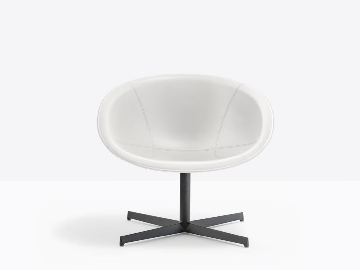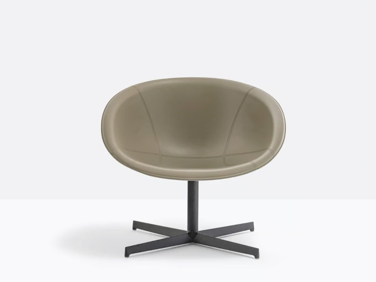 The GLISS LOUNGE 361 offers a blend of comfort and style, drawing inspiration from the iconic designs of the Fifties. Its ergonomic shape and distinctive shell with a unique opening provide both aesthetic appeal and practical functionality. This piece is ideal for hotels, cafés, and lounges, offering luxury seating with its sinuous armrests that provide a supportive embrace. The swivel lounge armchair features a genuine leather shell, complemented by a sturdy die-cast aluminum four-star base. Perfect for residential interior designers seeking modern lounge furniture, this armchair is a versatile addition to any space, offering customizable upholstery options and compact design suitable for small areas.