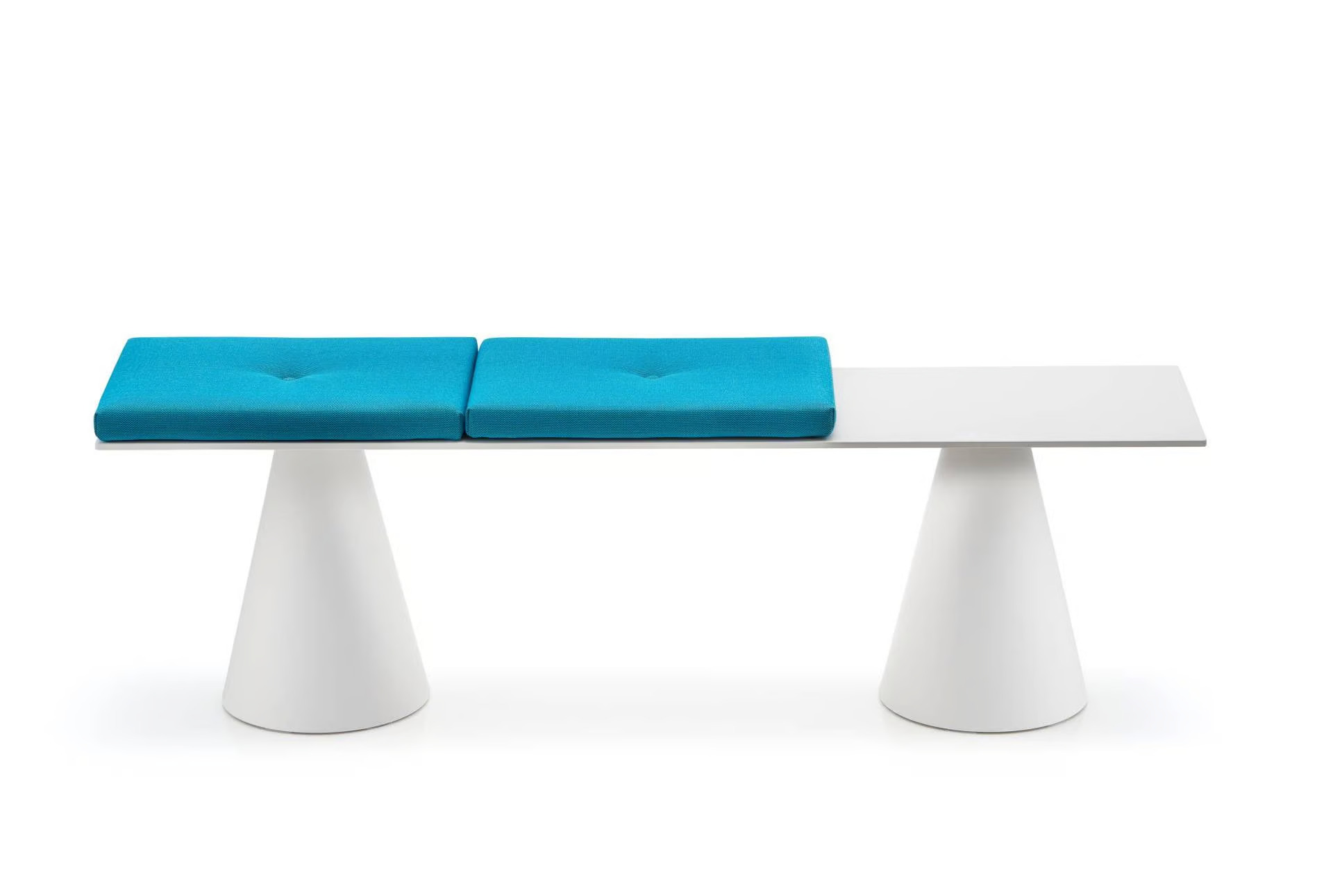 The IKON 863 1_L offers a blend of aesthetic appeal and practicality, making it an ideal choice for restaurants, conference rooms, coworking spaces, cafés, event venues, and educational institutions. This collection features modular seating with conical bases crafted from polypropylene reinforced with glass fibers, ensuring durability. The seating surface is made from solid laminate, providing a robust and modern design. For enhanced comfort, optional padded cushions are available in fabric or faux leather. The IKON 863 1_L is designed with simple shapes and clean lines, suitable for both indoor and outdoor settings. Available in a range of colors including white, black, light gray, and sand, this collection seamlessly integrates into various environments, offering ergonomic and stackable seating solutions.