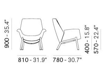 810 x 780 mm; H seat 400 mm; H armrests 570 mm; H 900 mm