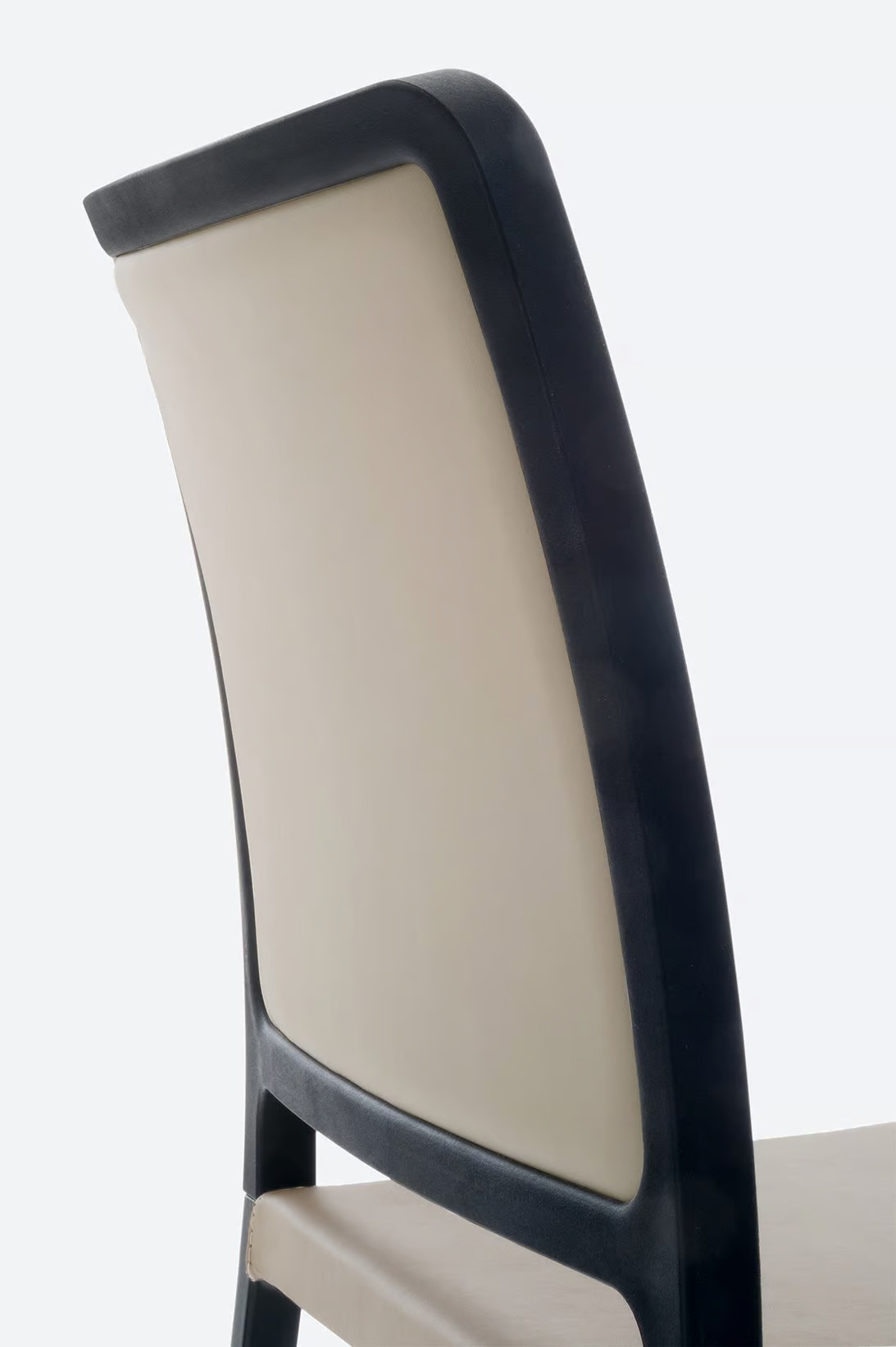 The MYA 711 offers a sophisticated seating solution with its sleek and slender design, ideal for various professional environments. This chair features a die-cast aluminum frame, ensuring durability and stability, making it suitable for dining tables in restaurants or as conference room furniture. The upholstered seat and backrest are available in either fabric or faux leather, providing comfort and style. The backrest profile, crafted from injection-molded polypropylene, adds to the chair's modern design. Its ergonomic structure supports long hours of use, making it a practical choice for educational institutions, coworking spaces, and event venues. Additionally, the stackable design allows for efficient storage, enhancing its functionality in dynamic settings.