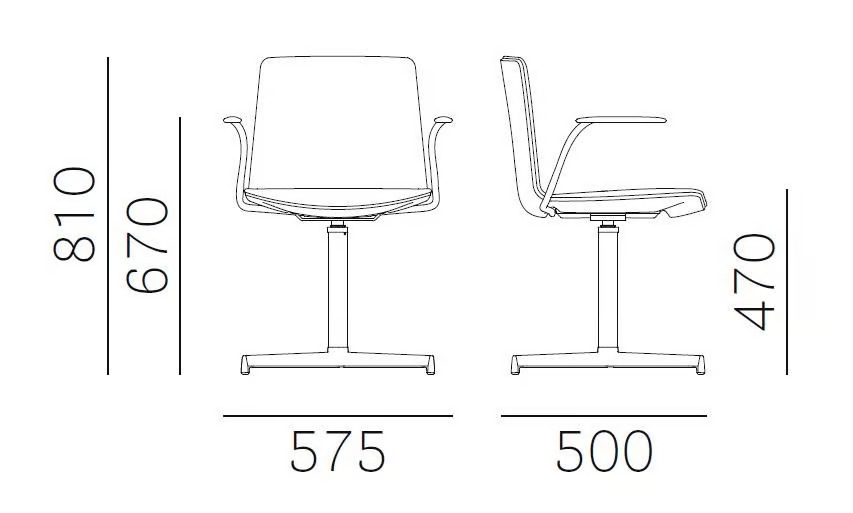 The NOA 728/2 offers a blend of elegance and comfort, ideal for restaurants, conference rooms, coworking spaces, cafés, event venues, banquet halls, and educational institutions. This modern design table and chair set features a swivel armchair with a polycarbonate back shell and an upholstered seat, ensuring ergonomic support. The durable seating is complemented by a die-cast aluminum four-star base, providing stability and style. The stackable chairs are perfect for spaces requiring flexible seating arrangements, making them a practical choice for conference room furniture. The NOA 728/2 is designed to meet the demands of high-traffic environments while maintaining a sophisticated aesthetic.