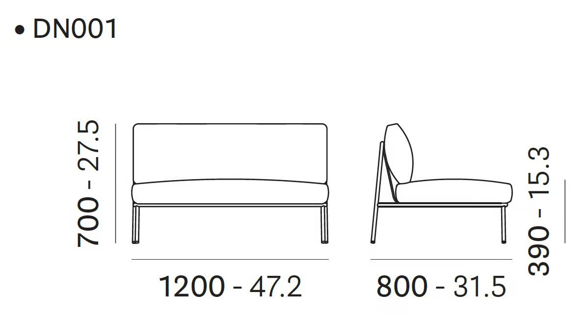 cod. DN002 / cod. DN003: 128 x 82 x H 70 cm Hs 39 cm