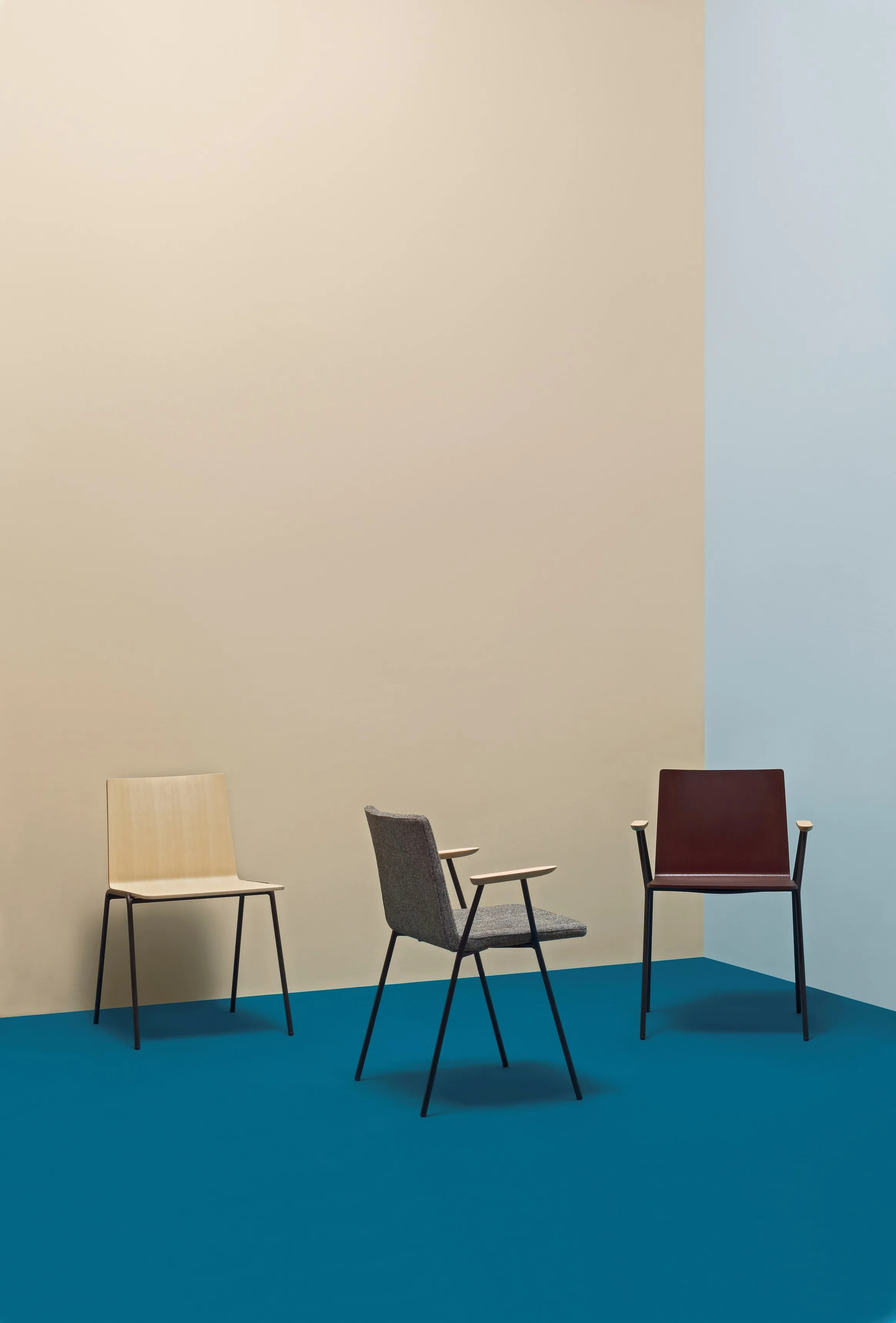 The OSAKA METAL 5712 is a versatile seating solution designed for various professional environments, including restaurants, conference rooms, coworking spaces, cafés, event venues, and educational institutions. This armchair features a robust ash plywood shell paired with a durable steel tube frame measuring 16 mm in diameter. The armrests, crafted from ash wood, add a touch of elegance and comfort. Its modern design seamlessly integrates into any setting, offering both style and functionality. The chair's ergonomic structure ensures comfort, while its stackable nature provides practical storage solutions. Ideal for dining tables, café settings, and conference room furniture, this chair combines aesthetic appeal with practical durability.