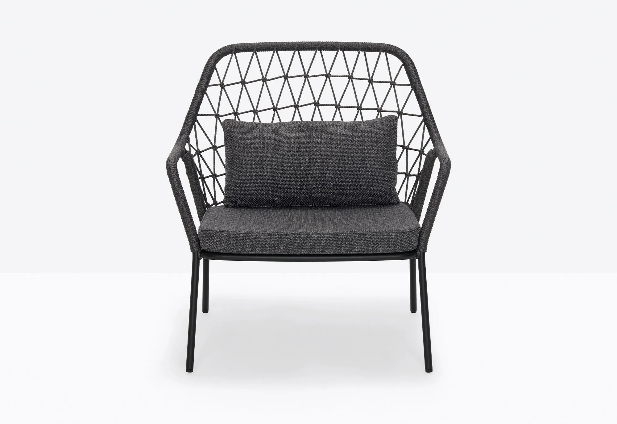 Inspired by the Mediterranean coastline, the PANAREA 3679 collection embodies the essence of outdoor elegance with its durable outdoor furniture design. Ideal for resorts, cafés, and beachside hotels, this range includes all-weather chairs and modular outdoor seating options. Each piece, including the armchair and lounge armchair, showcases Italian craftsmanship with a hand-woven polypropylene cord that forms a unique geometric pattern. The cord wraps around a tubular steel frame, extending to the armrests, enhancing both style and functionality. The wide, curved backrest and high back of the lounge armchair create a spacious, inviting area for relaxation. Featuring comfortable poolside loungers with cushions made from quick-drying polyurethane foam, these garden furniture sets are perfect for any setting. The stackable design ensures easy storage, making them suitable for outdoor events and patios.