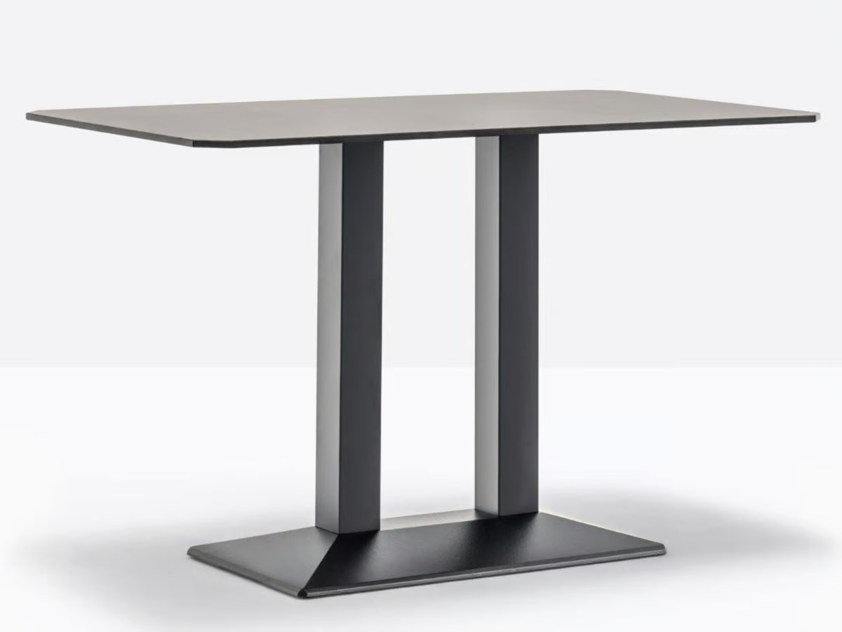 The QUADRA 4560 exemplifies stability and functionality through its solid geometric design. Featuring a pyramid-shaped base crafted from powder-coated, sand-blasted cast iron, it ensures durability and strength. The steel tube columns provide additional support, making it ideal for various settings. This modern design table is available with rectangular tops in multiple sizes and finishes, catering to diverse aesthetic preferences. Suitable for restaurants, conference rooms, coworking spaces, cafés, event venues, and educational institutions, it pairs seamlessly with ergonomic and stackable café chairs. The QUADRA 4560 is a versatile choice for those seeking reliable and stylish conference room furniture and dining tables.