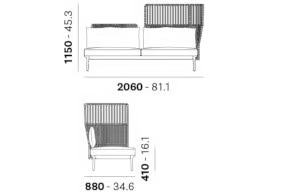 The REVA COCOON RVC024/026 is a versatile high-back seating solution designed for outdoor environments. This modular outdoor seating system offers flexibility and adaptability, making it ideal for resorts, cafés, and beachside hotels. Its distinctive design features striking backrests crafted from stainless steel and woven with weather-resistant polypropylene rope, providing a natural aesthetic. The expertly crafted cord element, made entirely in Italy, ensures privacy while maintaining an airy feel with its unique weave pattern. The backrests come in two heights, defined by a double curvature that complements the extruded aluminum frame, supported by four tapered die-cast aluminum legs. Enhanced comfort is provided by soft cushions, with seat cushions made from polyurethane foam and backrest cushions from polyester, all wrapped in waterproof lining and covered in durable outdoor fabric. This all-weather outdoor furniture piece is perfect for creating comfortable poolside loungers or durable patio chairs.