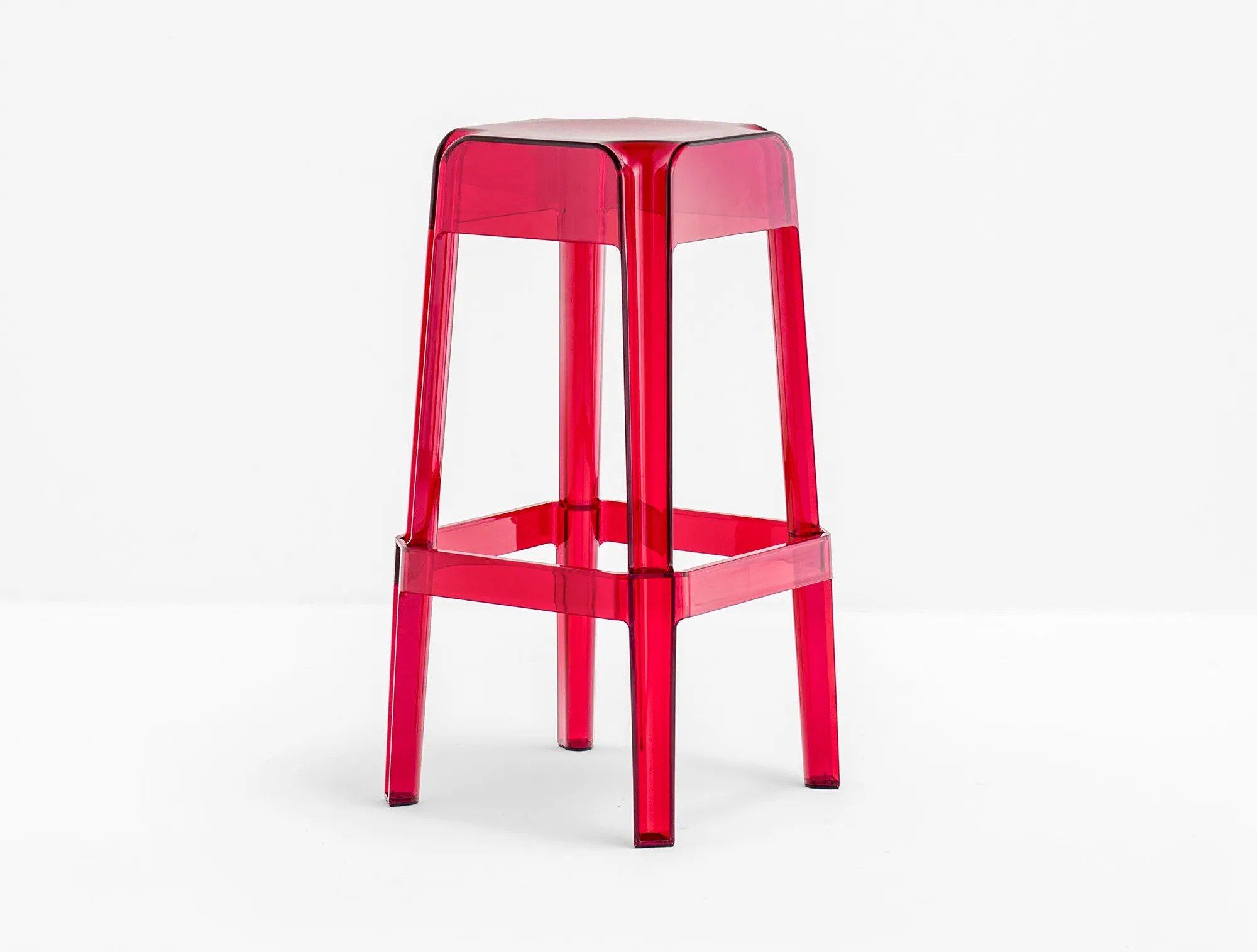 The RUBIK 580 is a versatile seating solution designed for diverse environments such as restaurants, conference rooms, coworking spaces, cafés, event venues, and educational institutions. This stackable stool features a sleek, modern design with thin, soft lines, crafted entirely from durable polycarbonate. Its ergonomic structure ensures comfort, while its shock-resistant and unbreakable properties make it ideal for both indoor and outdoor settings. The stool is available in a range of finishes, including shiny black, white, transparent, smoke grey, transparent red, and violet. An optional polyurethane cushion enhances comfort, particularly for outdoor use. With a seat height of 750mm, the RUBIK 580 seamlessly integrates into any setting, offering a practical and stylish seating option.