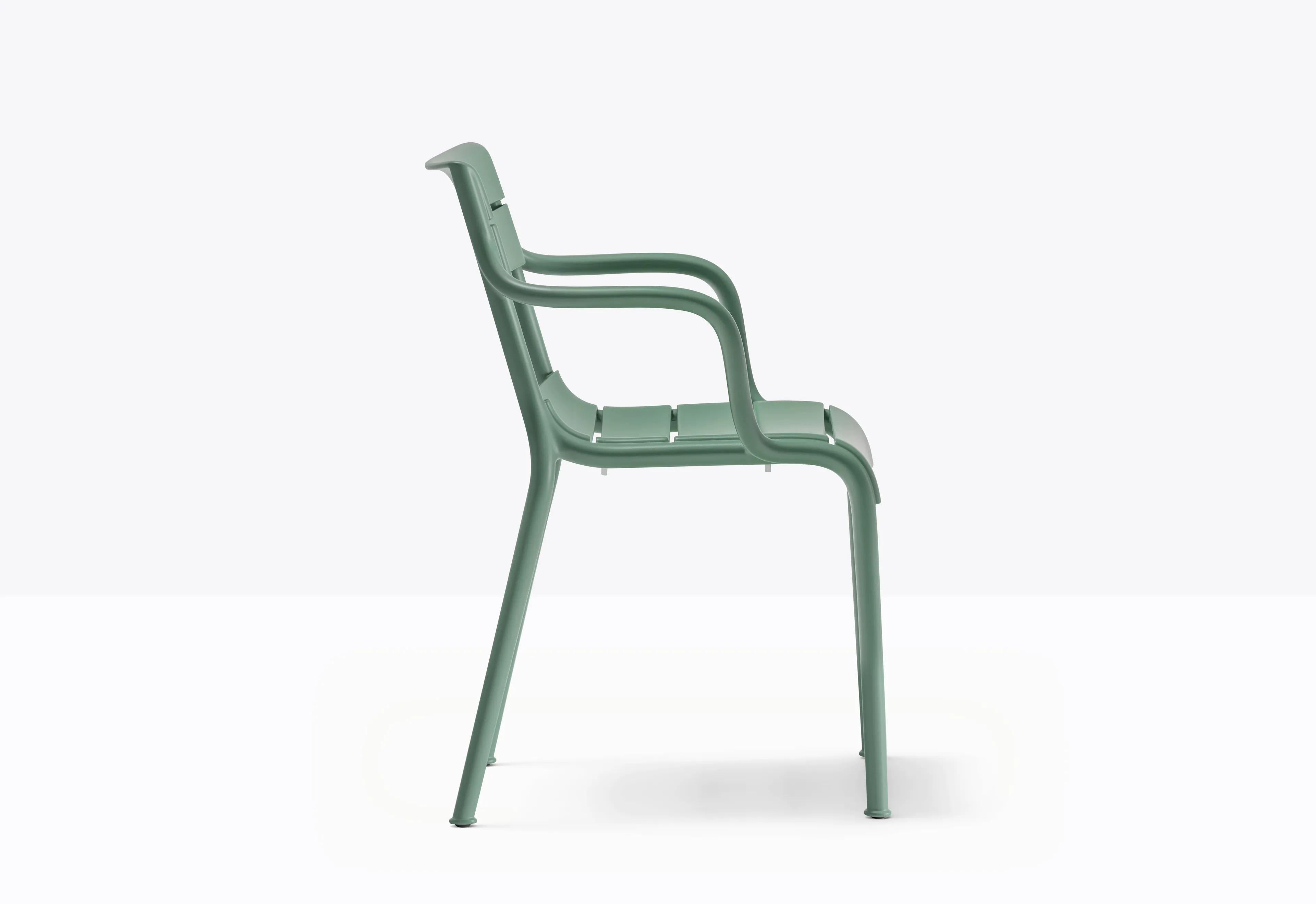 SOUVENIR 555 offers a modern take on the classic Parisian garden chair, crafted from a single piece of polypropylene. Designed for outdoor settings, it features a harmonious and organic shape that seamlessly integrates all its elements. The chair's soft contours and three-dimensional slats provide comfort, while the legs elegantly widen at the base, merging into a distinctive small foot. Ideal for dining tables in restaurants, conference room furniture, or as café chairs, this piece combines style with functionality. Its durable seating and ergonomic design make it suitable for various environments, including coworking spaces, event venues, and educational institutions. The stackable nature of the chair ensures easy storage and versatility.
