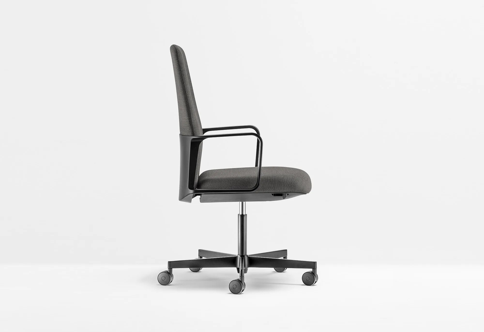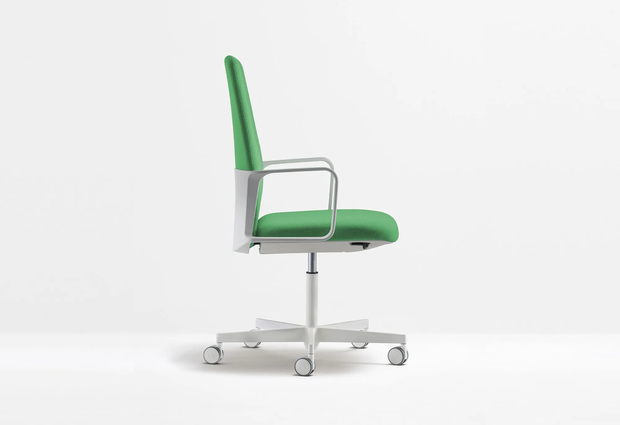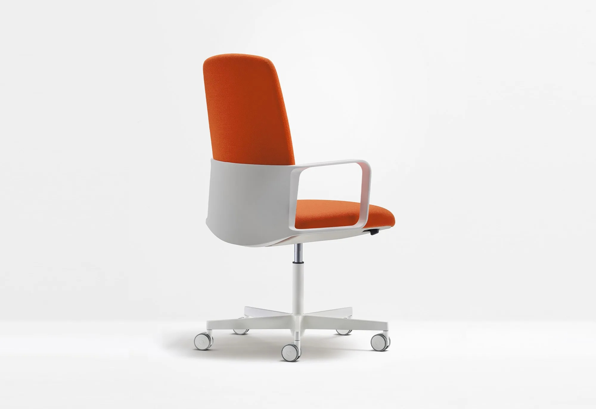 TEMPS 3765 is designed for corporate offices, coworking spaces, and educational institutions, offering a blend of functionality and style. Its height-adjustable base, crafted from die-cast aluminum, provides a sleek and modern look. This ergonomic office chair features a weight-activated synchro-tilt mechanism, which autonomously adjusts the tilt based on the user's body weight, ensuring optimal comfort and support. The anatomical design promotes proper posture, while the injection-molded polypropylene shell encases the seat, supporting the lower back. The integrated padding within the shell creates a seamless and continuous line, enhancing both comfort and aesthetics. Ideal for modern office desks and collaborative workspace furniture, TEMPS 3765 complements modular workstation furniture and adjustable height desks, making it a versatile choice for any professional environment.