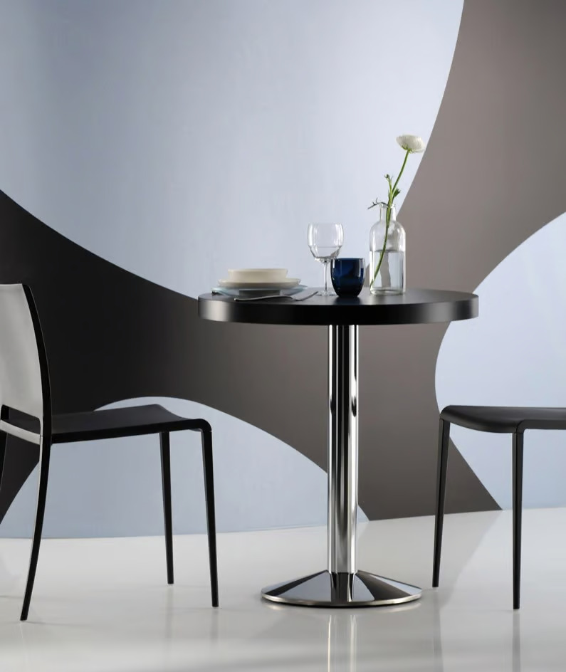 The Tonda features a sandblasted cast iron base paired with a satin-finish, chrome-plated, or painted stainless steel column, making it a versatile choice for dining tables in restaurants, conference room furniture, and café settings. Its modern design tables are complemented by the option of adjustable feet, ensuring stability on various surfaces. Tonda can be customized with shelves in a range of sizes and finishes, catering to diverse aesthetic preferences. Additionally, an outdoor version is available, expanding its utility to event spaces and banquet halls. Ideal for educational institutions and coworking spaces, Tonda pairs seamlessly with ergonomic and stackable café chairs, offering durable seating solutions for any environment.