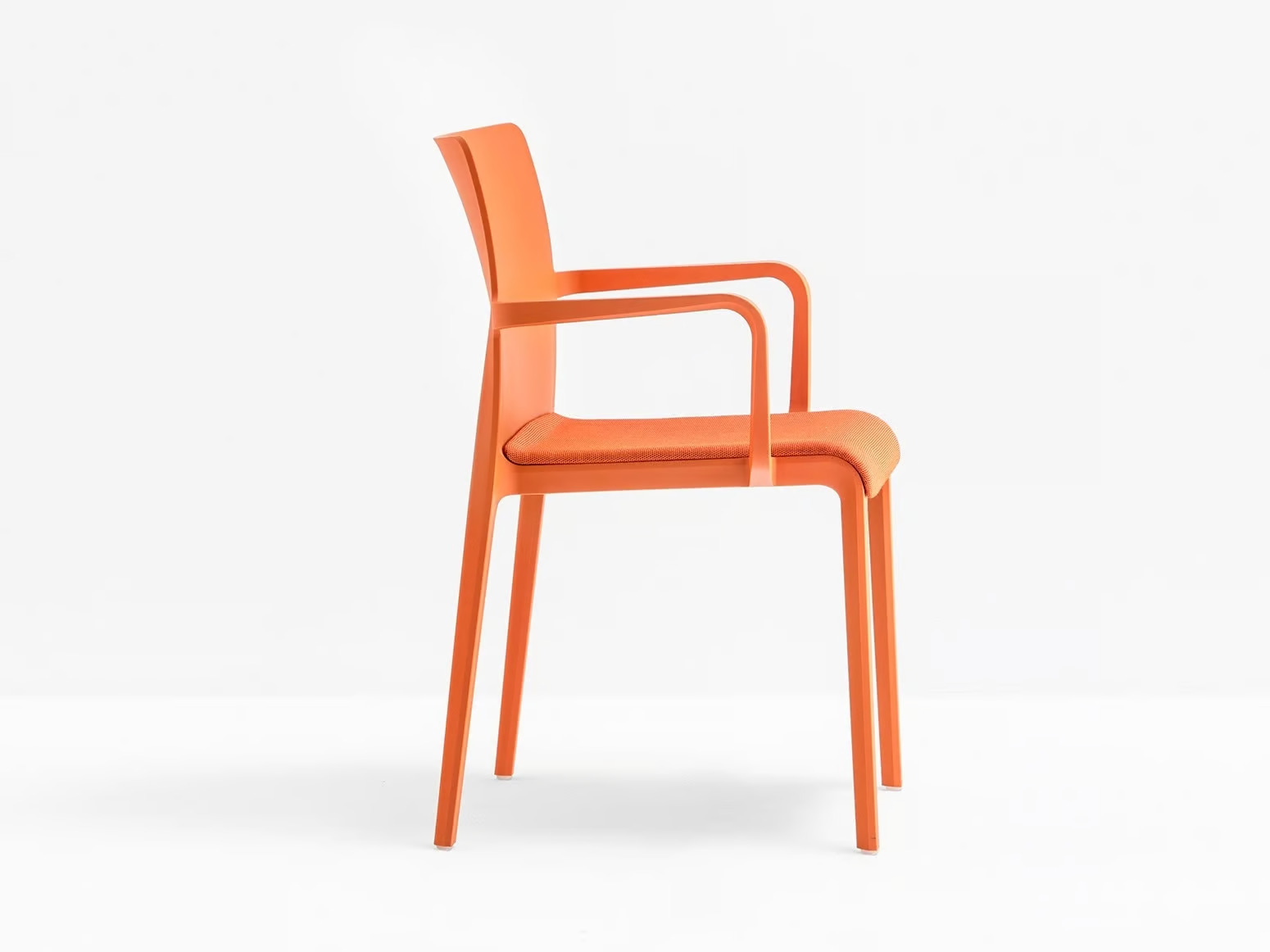 The VOLT 674 is a gas-assisted injection-molded polypropylene armchair, enhanced with glass fibers for added strength. Designed with a high backrest, this chair offers both elegance and comfort, making it suitable for various settings such as restaurants, conference rooms, coworking spaces, cafés, event venues, and educational institutions. Its modern design and ergonomic shape ensure a comfortable seating experience, while the thin profile and well-balanced proportions add a touch of sophistication. The stackable feature of these café chairs allows for easy storage, making them an ideal choice for spaces requiring flexible seating arrangements. The VOLT 674 seamlessly combines style and functionality, providing durable seating solutions for diverse environments.