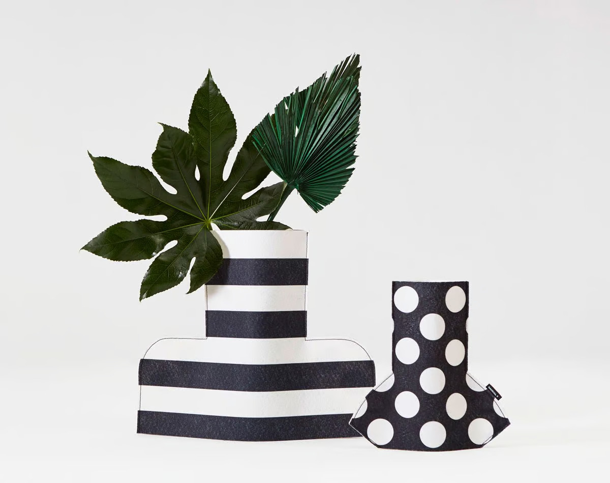 The 'FLOWER POWER L MONOCHROME 01' is a unique addition to modern wall art and luxury home accessories. Crafted by Estudio Sancal, this collection of textile vases combines practicality with artistic flair, offering a minimalist home decoration idea that suits hotels, retail stores, boutique spaces, and residential designs. Inspired by nature and small details, these vases serve as stylish decorative pieces, either as standalone elements or as covers for traditional vases. The Monochrome edition features elegant black and white prints, utilizing a sublimation printing technique that ensures vibrant colors. Made from industrial felt, these vases are durable and lightweight, providing a warm texture. They also offer a customizable wall décor option, transforming ordinary plastic bottles into luxury vases. The collection includes illustrations by Egle Zvirblyte and Estudio Sancal, making it a versatile choice for modern wall art and prints.