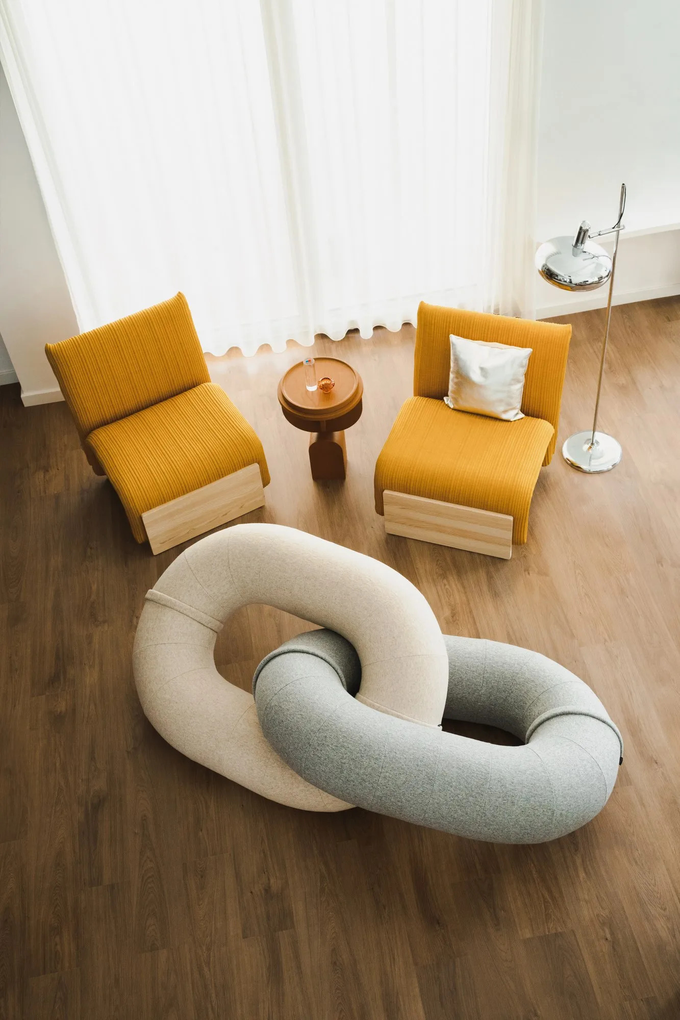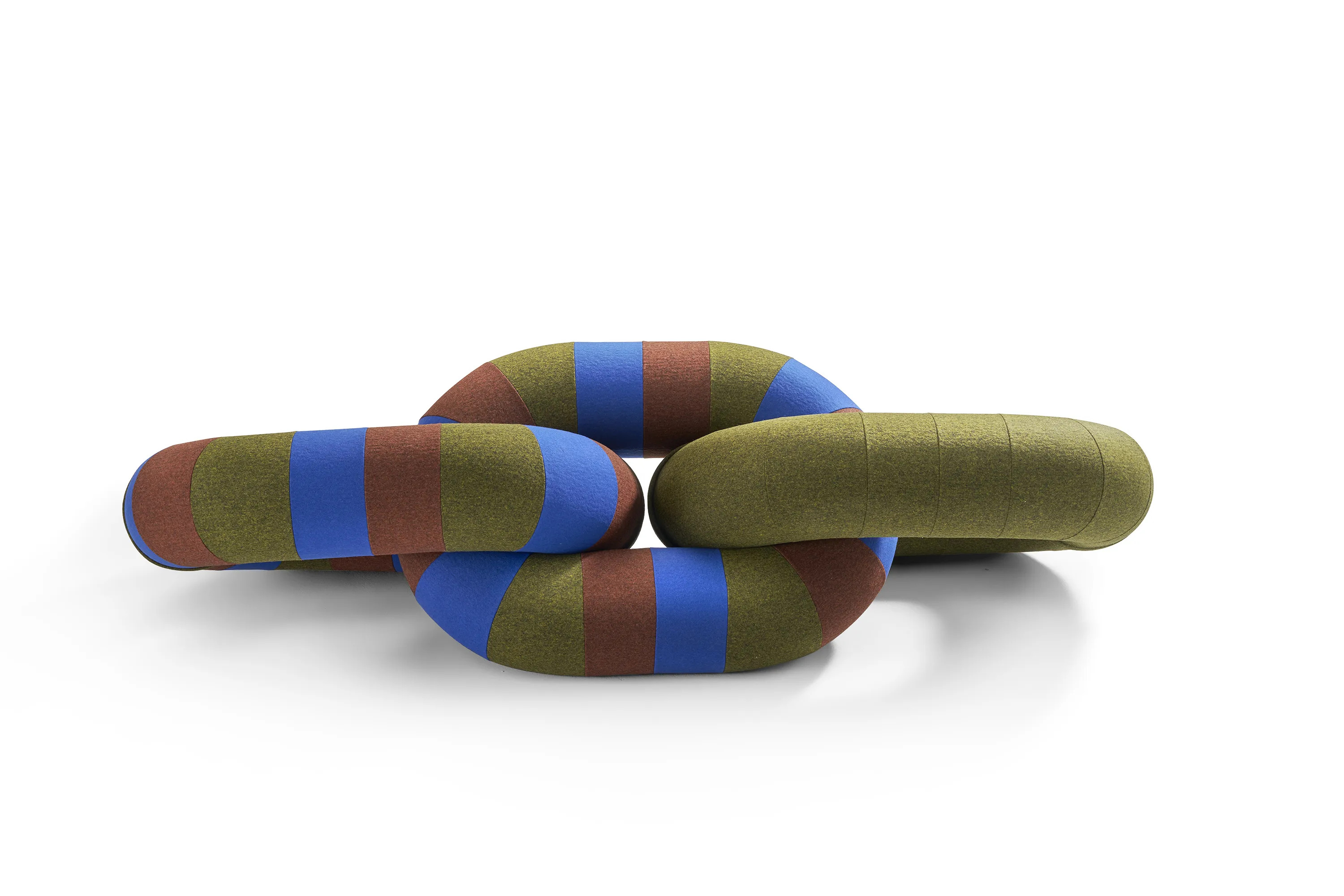The LINK collection redefines traditional seating with its artistic and modular design, ideal for hotels, cafés, lounges, and waiting rooms. Inspired by the fluid forms of a chain, these sculptural pieces offer a unique blend of functionality and aesthetic appeal. The modular sofas and luxury armchairs provide comfortable seating solutions, perfect for modern lounge settings. Available in a range of custom upholstery options, including the new Wrinkled Link version, these pieces feature a quilted filling for added softness and a distinctive crinkled effect. The design allows for easy maintenance with a removable cover, making it a practical choice for high-traffic areas. With additional color options and the commemorative Fiesta textile, LINK offers customizable sofa designs that cater to diverse interior styles, from compact furniture for small spaces to expansive lounge seating arrangements.