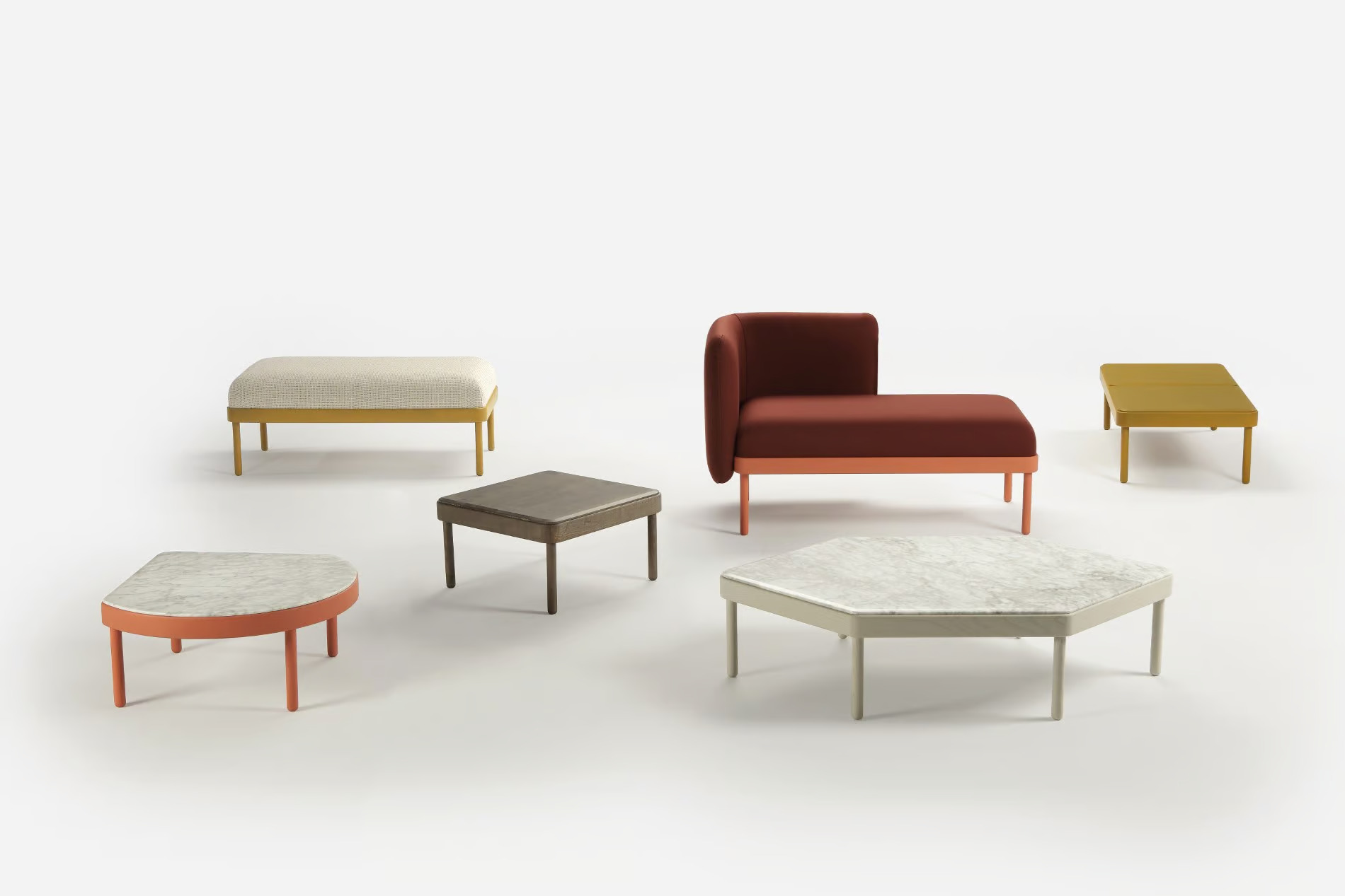 MOSAICO, crafted in collaboration with the design studio Yonoh, offers a versatile collection of lounge seating and occasional tables, ideal for hotels, cafés, lounges, and waiting rooms. Inspired by Valencia's iconic ceramic tiles, this modular furniture system addresses various spatial needs with its adaptable design. The bases, constructed from ash, come in five sizes and can be paired with either marble or wooden tops, as well as upholstered seat cushions. Optional backs transform these pieces into compact luxury sofas and armchairs. The hexagonal elements allow for creative configurations, including closed loops, while the curved corner angles introduce a graceful flow to the design. MOSAICO's customizable sofa designs and ergonomic features make it a perfect choice for modern lounge furniture and comfortable seating solutions in both commercial and residential spaces.