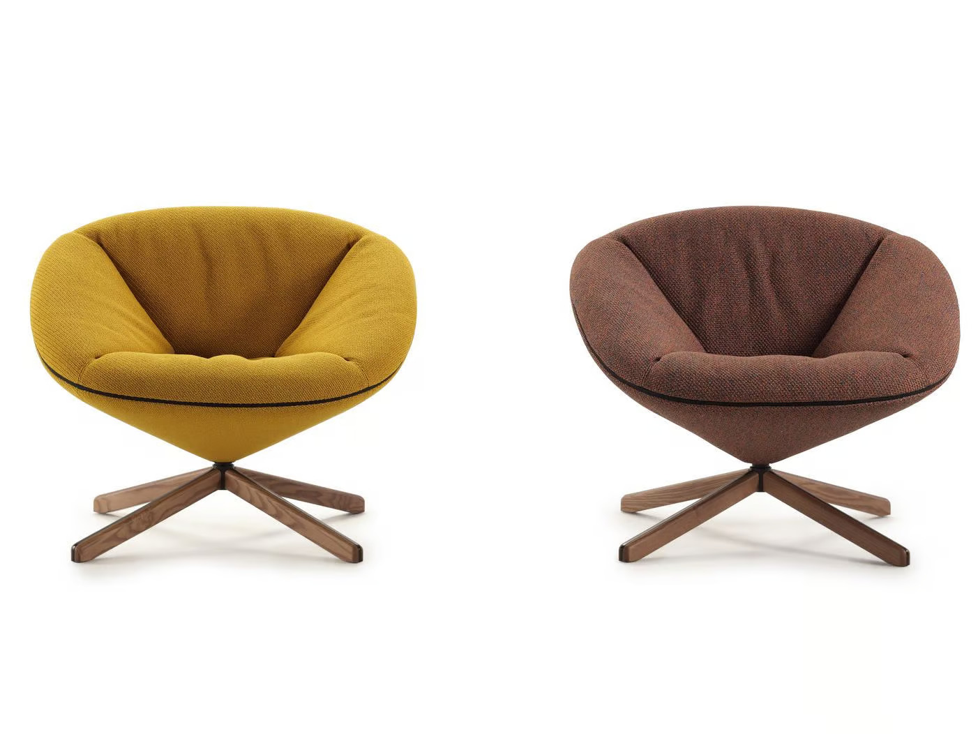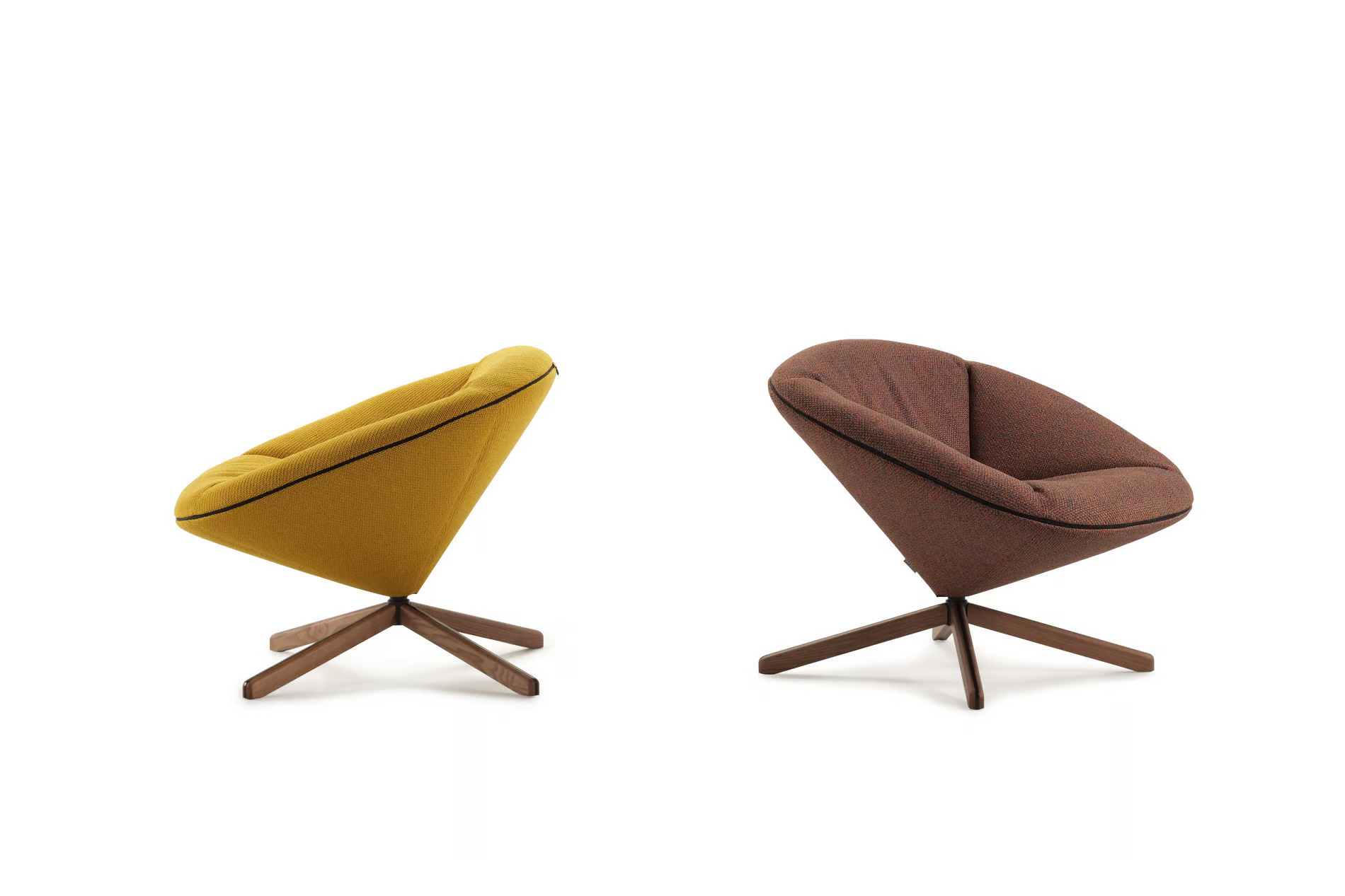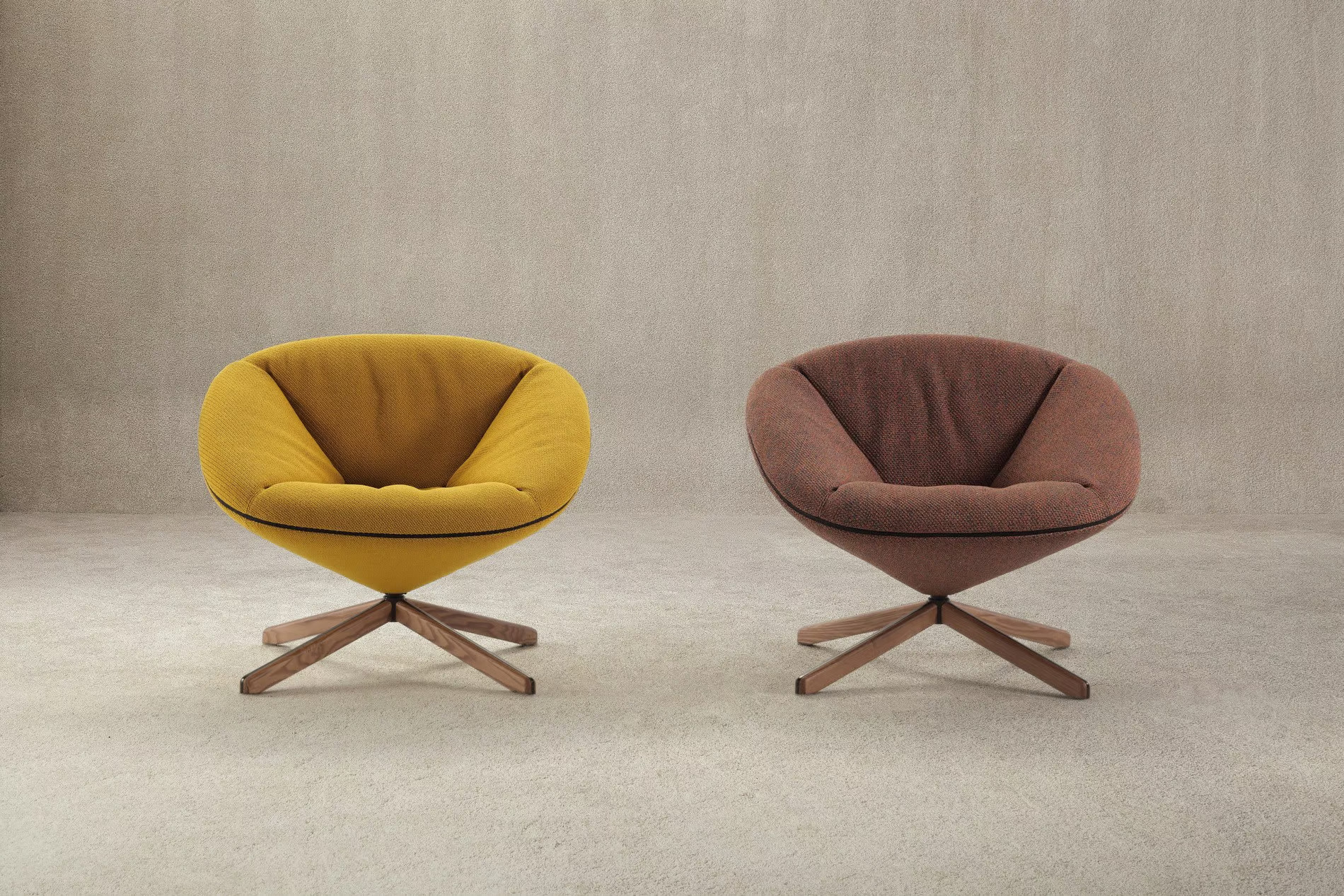 The TORTUGA Easy Chair, designed by Nadadora, draws inspiration from the serene and enduring nature of a tortoise. This luxury armchair offers a cozy retreat, perfect for hotels, cafés, lounges, and waiting rooms. Its ergonomic design and modular structure make it an ideal choice for modern lounge furniture, providing comfortable seating solutions in both residential and commercial spaces. The chair's formal simplicity is complemented by customizable upholstery options, allowing for a unique blend of textiles on the back, seating area, and headrests. Available in five curated color combinations—Deep Blue, Emerald, Autumn, Polar, and Mist—this collection includes rotating lounge chairs, poufs, and tables. The TORTUGA Easy Chair is a versatile piece, suitable for compact spaces and adaptable to various interior design needs.