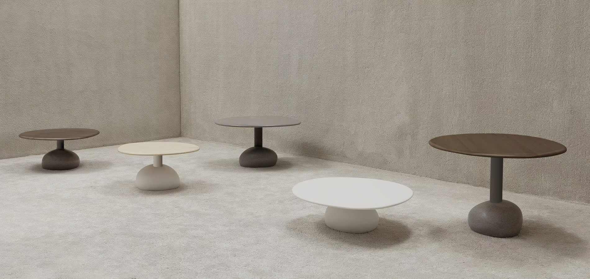 The VESPER coffee table, designed by Sebastian Herkner for Sancal, offers a versatile solution for various settings, including restaurants, conference rooms, coworking spaces, cafés, event venues, and educational institutions. This collection features tables in four different heights, catering to diverse needs from low occasional tables to dining tables. Inspired by nature, the design incorporates an innovative blend of stone and resin, creating bases with smooth, pebble-like edges. The table tops, available in stained solid slatted ash or Stonacril board, mimic the natural erosion process. The base is crafted from Stonacril, with a foot column made of epoxy-coated steel, available in white or quartz-grey. This modern design seamlessly integrates with dining tables, café chairs, and other conference room furniture, offering durable and stylish seating solutions.