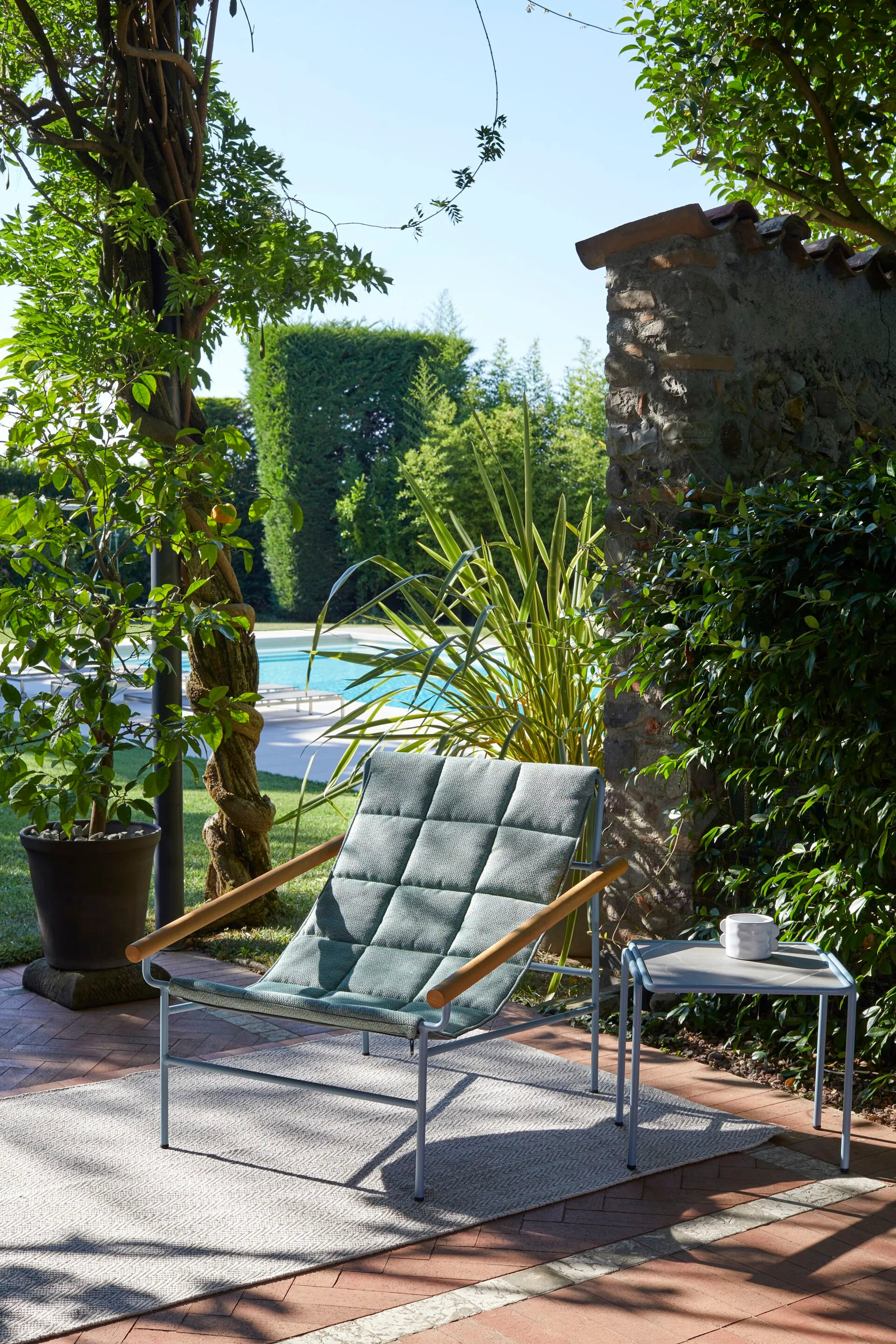 The DRESS_CODE GLAM OUTDOOR collection offers a sophisticated blend of style and functionality, ideal for resorts, cafés, restaurants, outdoor event planners, and beachside hotels. This durable outdoor furniture line features all-weather chairs designed to withstand various climates, making them perfect for garden furniture sets and modular outdoor seating arrangements. The armchair showcases a unique design inspired by haute couture, with a choice of smooth, quilted, or wave-shaped padded upholstery. These options not only enhance the aesthetic appeal but also provide added comfort. A headrest cushion, available as an accessory, complements the design with its fabric cover. This collection is an excellent choice for those seeking comfortable poolside loungers and durable patio chairs that seamlessly integrate with any outdoor setting.