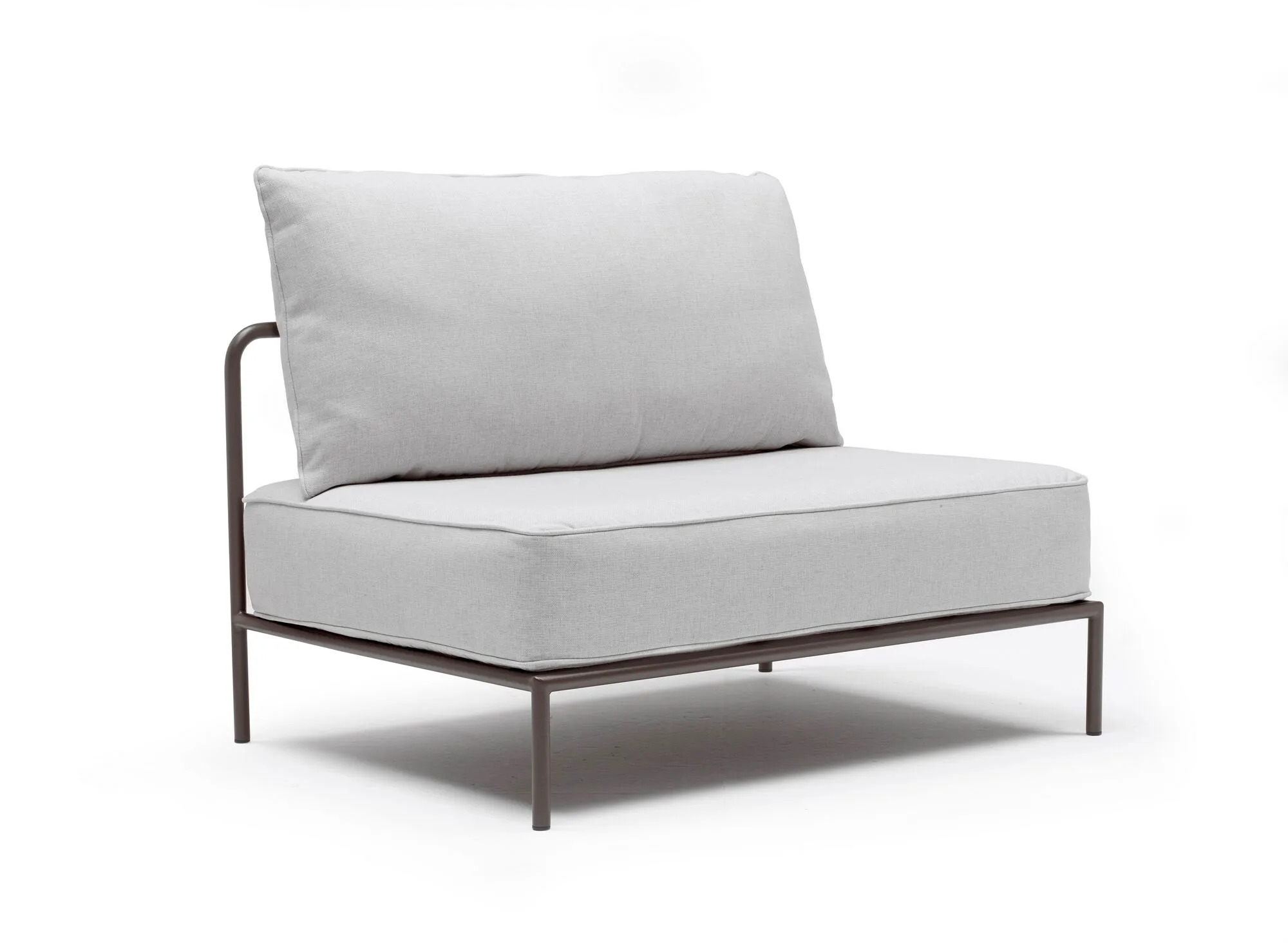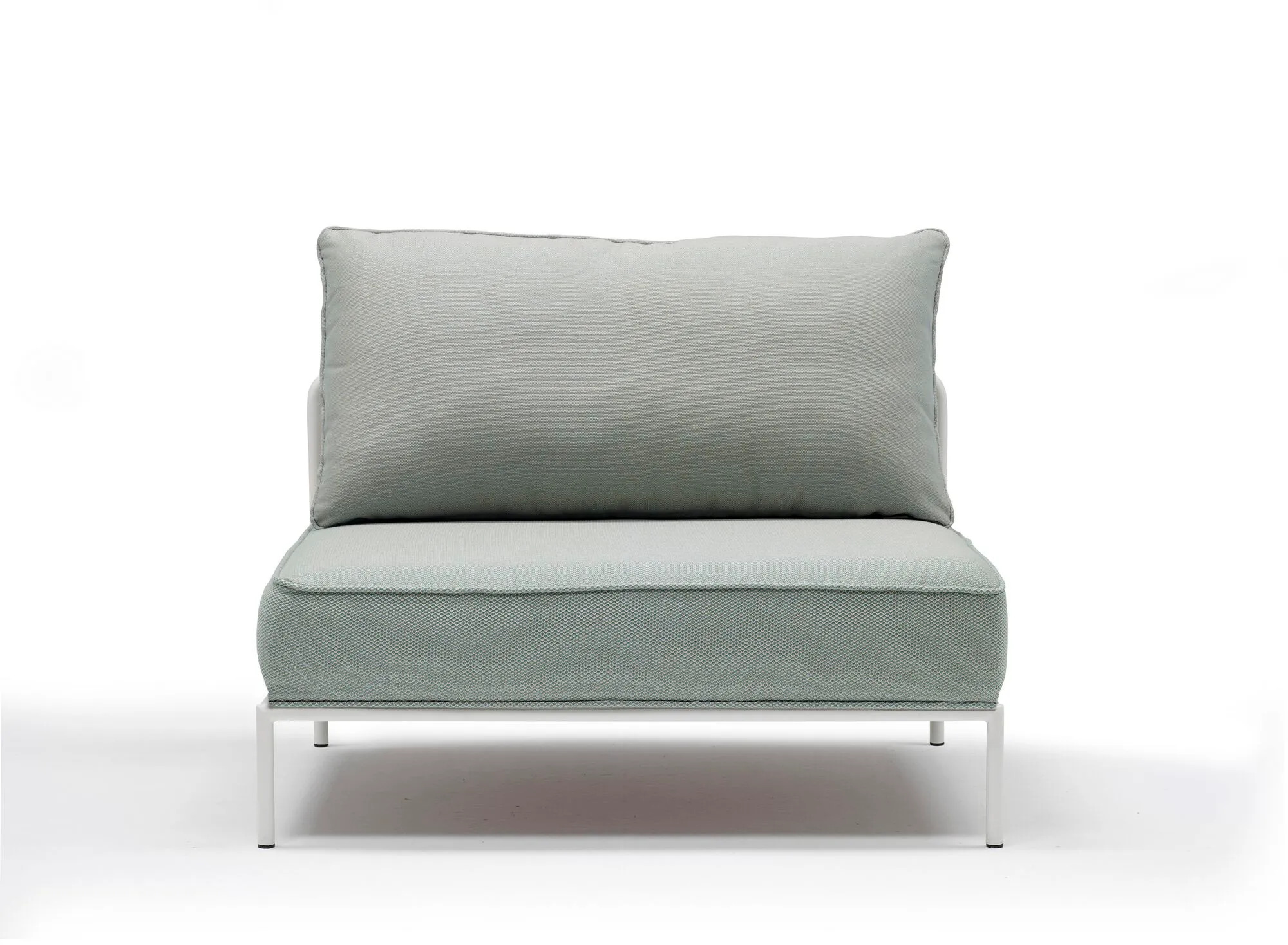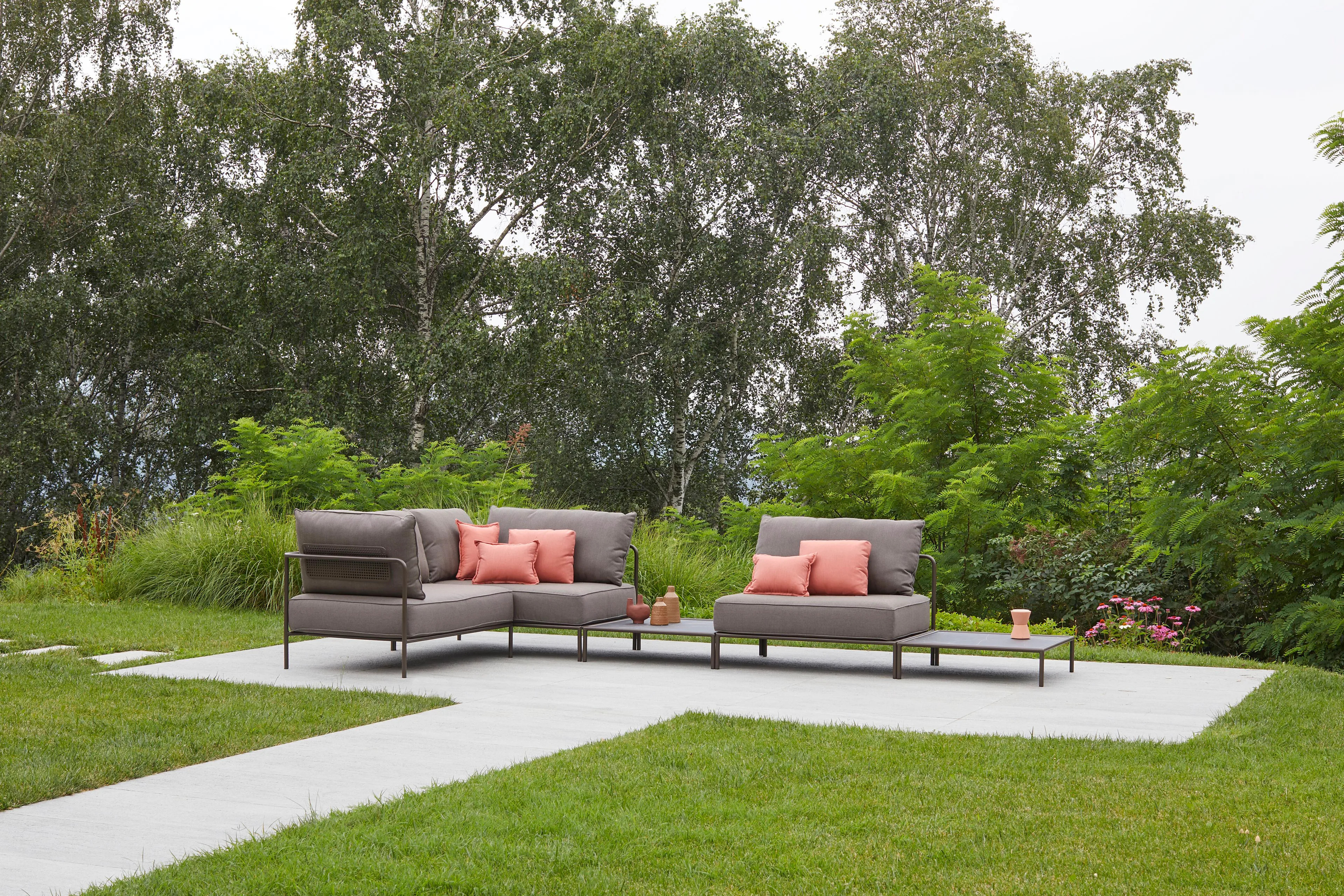 FLAP by Meneghello Paolelli offers a unique blend of modular upholstered seating, seamlessly bridging the gap between indoor and outdoor environments. This versatile piece features seating elements that can be combined with support surfaces, making it ideal for resorts, cafés, and beachside hotels. The design includes elements resembling aircraft flaps attached to the backrest, providing support for the rear cushions. Constructed with a durable metal frame, FLAP is available in a variety of colors, including linen, dove grey, anthracite, mocha, and terracotta. Its wide range of outdoor fabrics ensures suitability for all-weather conditions, making it a reliable choice for garden furniture sets, comfortable poolside loungers, and durable patio chairs.