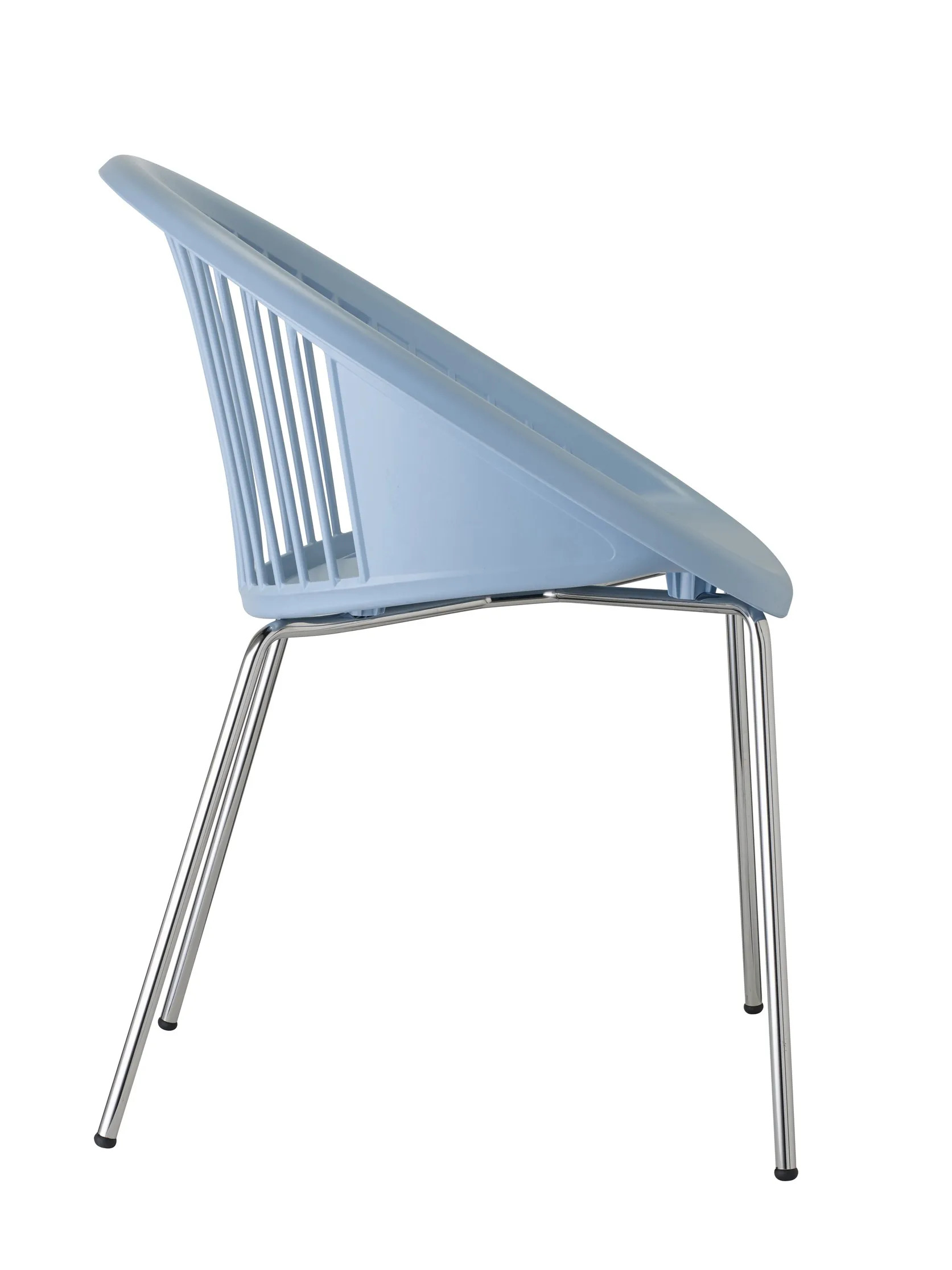 The GIULIA collection offers versatile seating solutions ideal for restaurants, conference rooms, coworking spaces, cafés, event venues, and educational institutions. Each set includes four stackable chairs, designed with a technopolymer frame available in linen, dove grey, and anthracite grey. The four-legged structure comes in two options: chromed steel or a Natural version with wooden legs for indoor use, and polyester powder-coated steel for outdoor settings. The chair's body features slits for a lightweight design, facilitating easy movement and stacking. These ergonomic chairs are crafted to optimize storage space and efficiently drain rainwater, making them a practical choice for modern design tables and conference room furniture.