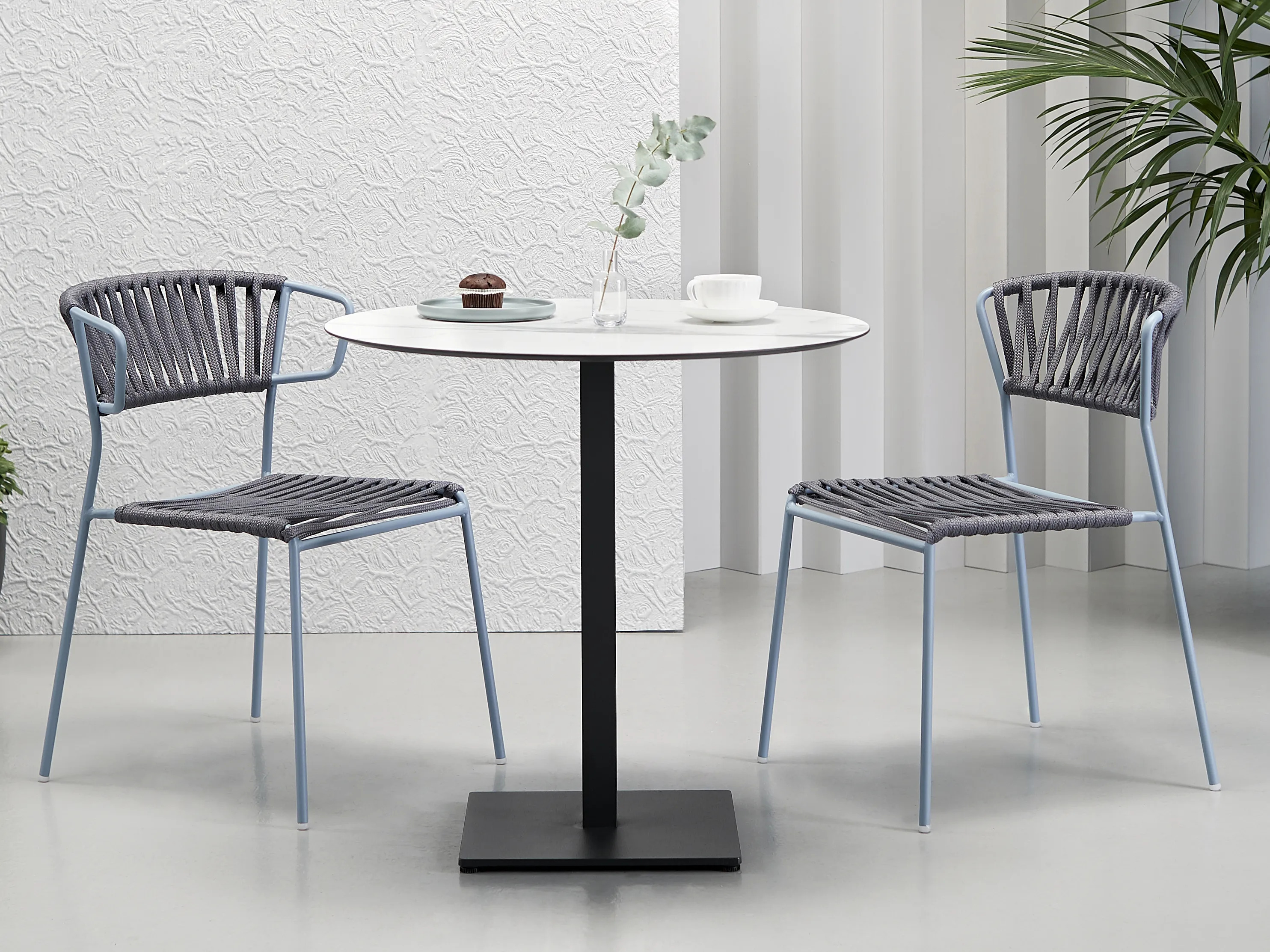 LISA FILÒ offers a versatile range of seating options, including chairs, armchairs, and stools, designed to meet the needs of restaurants, conference rooms, coworking spaces, cafés, event venues, and educational institutions. Crafted with durable nautical rope, these pieces are suitable for both indoor and outdoor settings. Available in eight different structure and color combinations, they seamlessly blend into various environments. The design draws inspiration from the sophisticated aesthetics of the 1950s and 1960s, featuring a retro charm and a comforting, home-like feel. The ergonomic and upholstered seatback and seat provide comfort, while the lightweight yet sturdy metal frame enhances the visual appeal. LISA FILÒ's stackable chairs offer practical solutions for dynamic spaces, making them an ideal choice for modern design tables and conference room furniture.