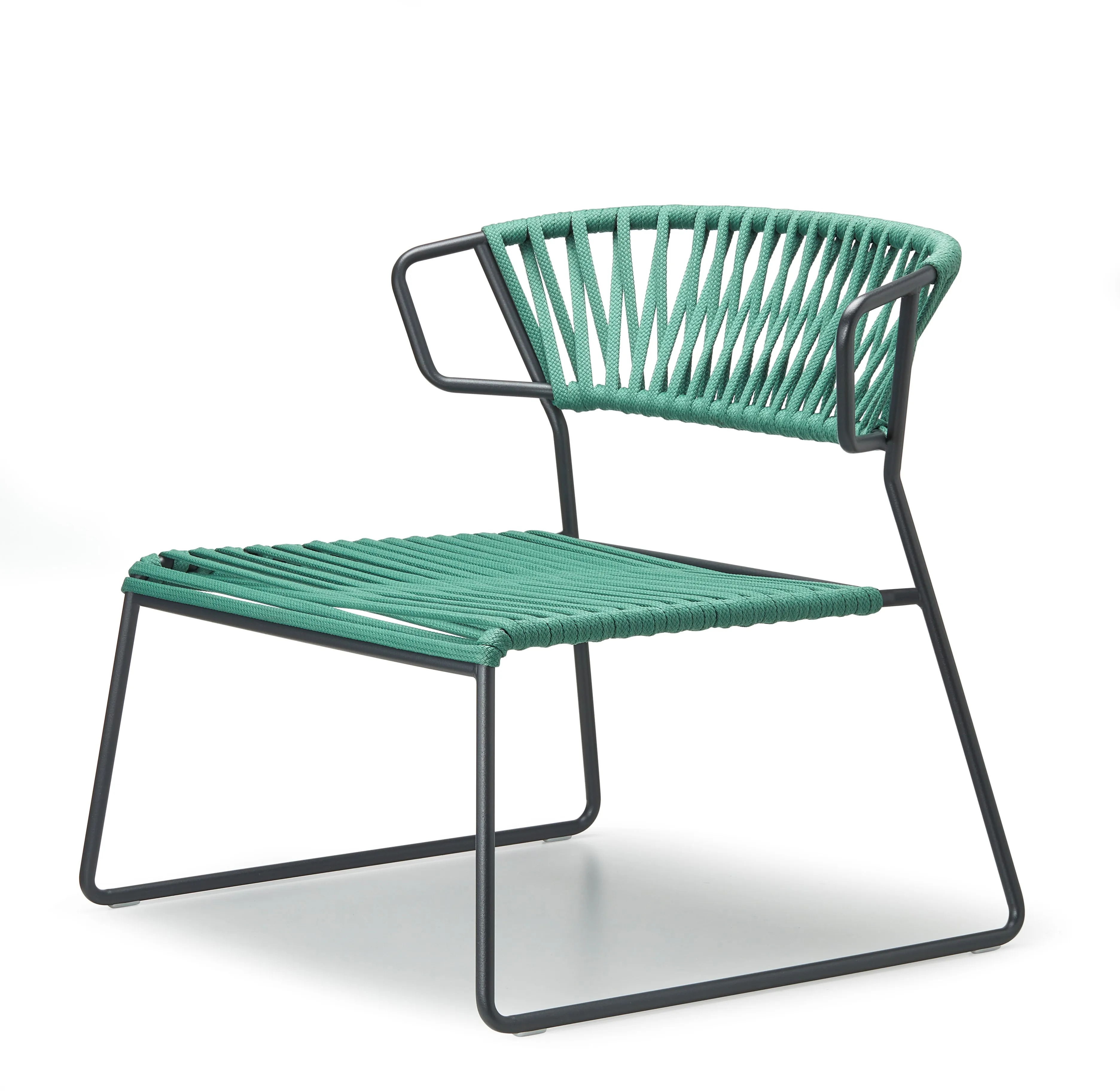 The LISA LOUNGE FILÒ is designed for versatile settings such as hotels, cafés, lounges, and waiting rooms, offering a blend of comfort and style. This modern lounge furniture piece features a nautical rope ribbon, crafted exclusively for SCAB Design in four elegant colors, meticulously woven by artisans onto galvanized and powder-coated steel frames for enhanced weather resistance. Available in five structure and rope color combinations, including linen with silver rope and anthracite with black rope, it embodies the sophisticated aesthetics of the '50s and '60s. The ergonomic design, with its enveloping upholstered seatback and seat, provides comfortable seating solutions for both residential and commercial interiors. Its lightweight yet durable metal structure adds a visual sense of lightness, making it suitable for compact spaces. The LISA LOUNGE FILÒ is available in chair, armchair, and stool versions, offering customizable sofa designs for any setting.