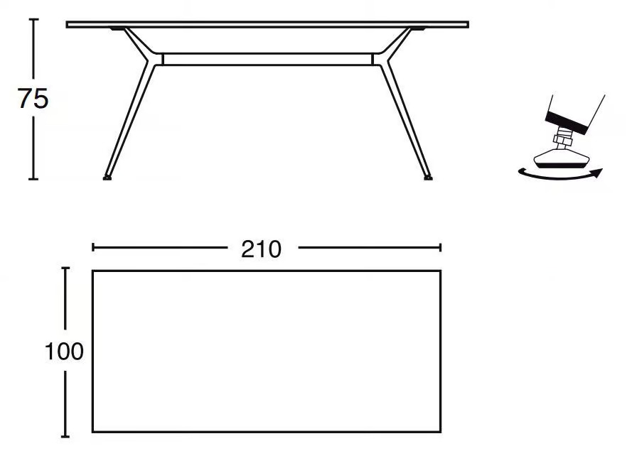 The METROPOLIS XL table by SCAB Design offers a sophisticated solution for restaurants, conference rooms, coworking spaces, cafés, event venues, and educational institutions. Featuring a spacious rectangular top measuring 210x100 cm, this modern design table is crafted from stratified compact material, providing both durability and elegance. The table's structure includes legs and a cross-beam made from opaque painted steel, complemented by a die-cast aluminum support element. Available in a range of contemporary finishes—opaque white, graphite, and dove grey—the table top comes in white, dove-grey oak, beaver oak, and cement effect. Swiveling and adjustable feet ensure stability on various surfaces, making it a versatile choice for diverse settings.